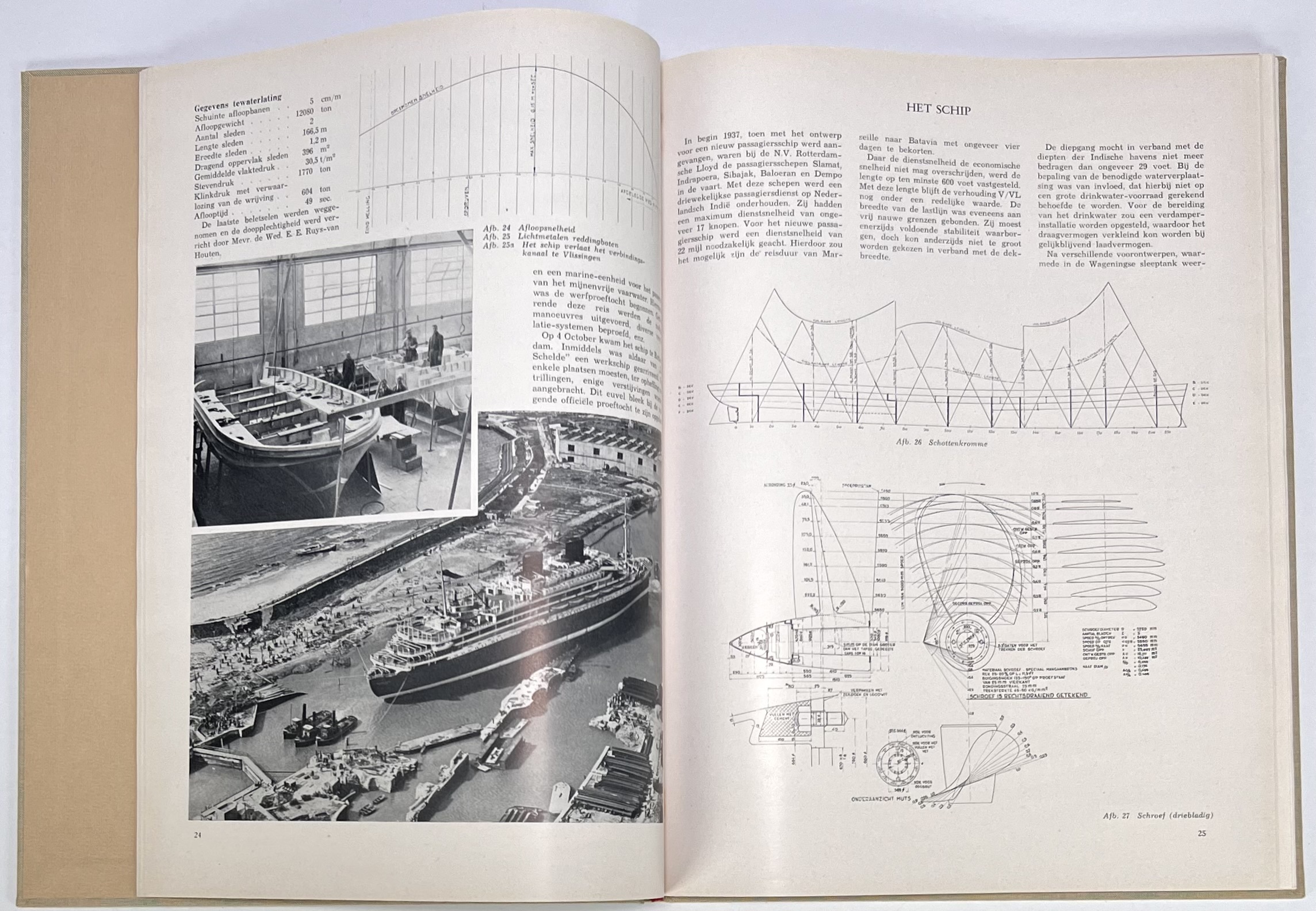 Boek over "Dubbelschroef Motorpassagiersschip Willem Ruys" van de Koninklijke Rotterdamsche LLoyd, samengesteld door G. Zanen, gedrukt door N.V. Drukkerij M. Wyt & Zonen te Rotterdam 1947. Uitgevoerd in drukwerk met foto’s, tekst en uitvouwbare technische tekeningen van het schip. Bevat informatie over ontwerp, constructie en ingebruikname van het passagiersschip Willem Ruys, inclusief portret van koningin Juliana. Eerst dit scheepvaart boek zien voordat je biedt? Bezoek onze kijkdagen op 29, 30 en 31 augustus van 11:00 tot 17:00 uur! |