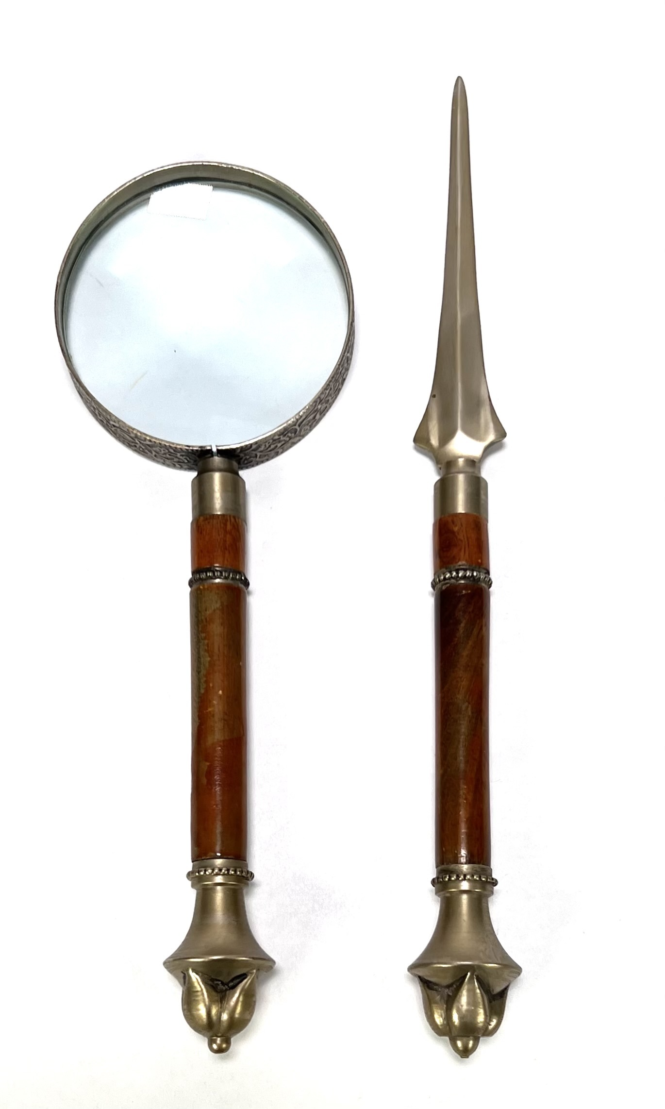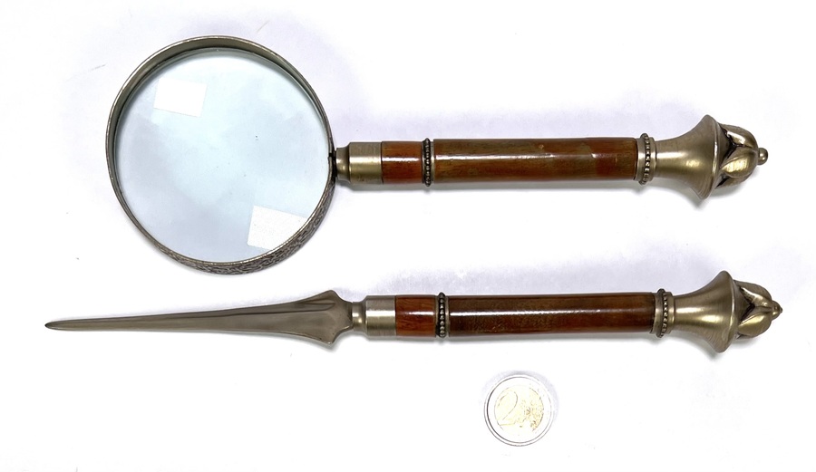 Messing vergrootglas en briefopener, ca. midden 20e eeuw
