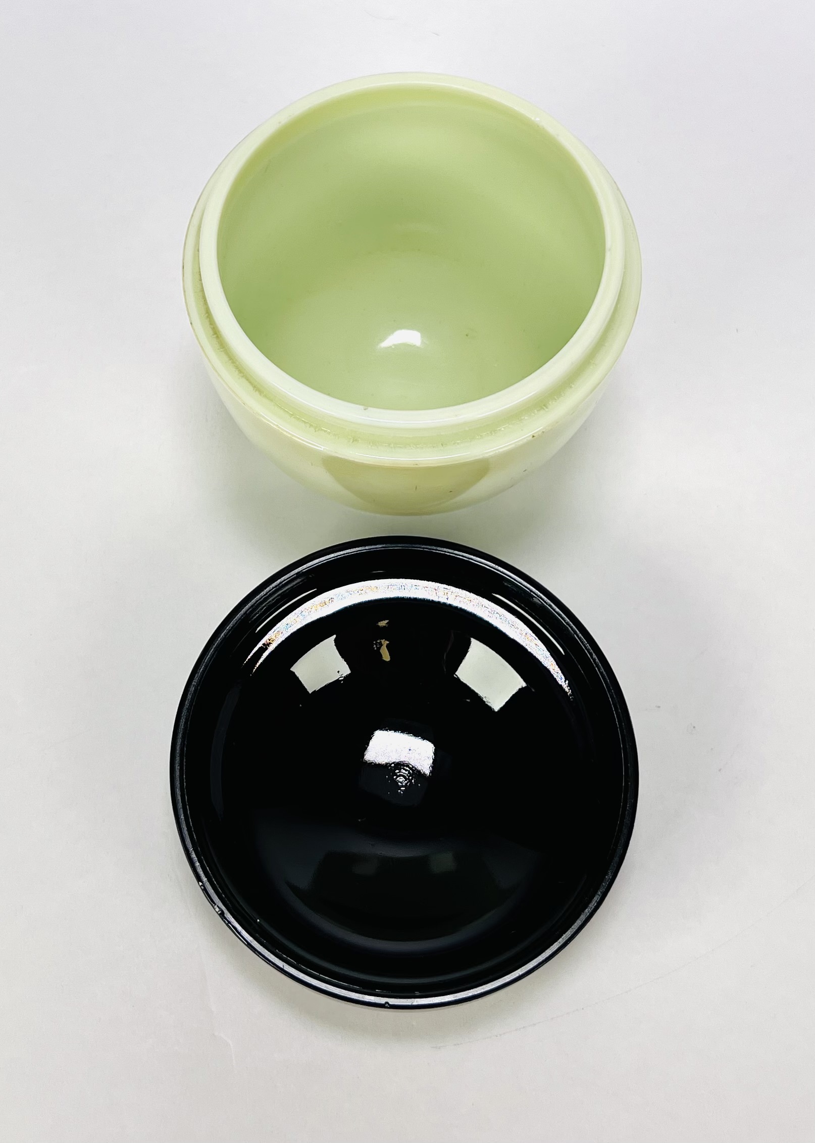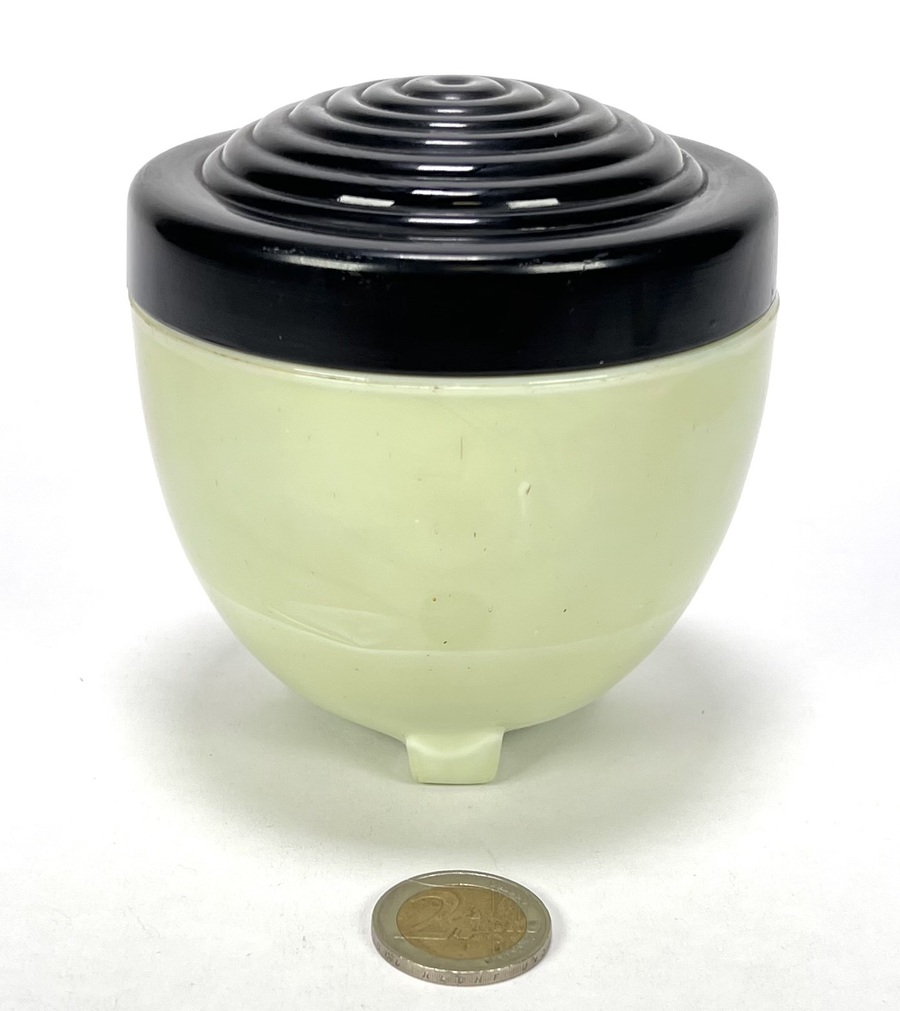 Gele colopal glazen tabakspot met zwarte deksel, ontwerp A.D. Copier 1931, uitvoering Glasfabriek Leerdam. Afgebeeld in: Leerdam Glas 1878-2003, A. v.d. Kley-Blekxtoon; pag.101. Klaar om te bieden? Registreer je nu en doe mee aan de veiling! |