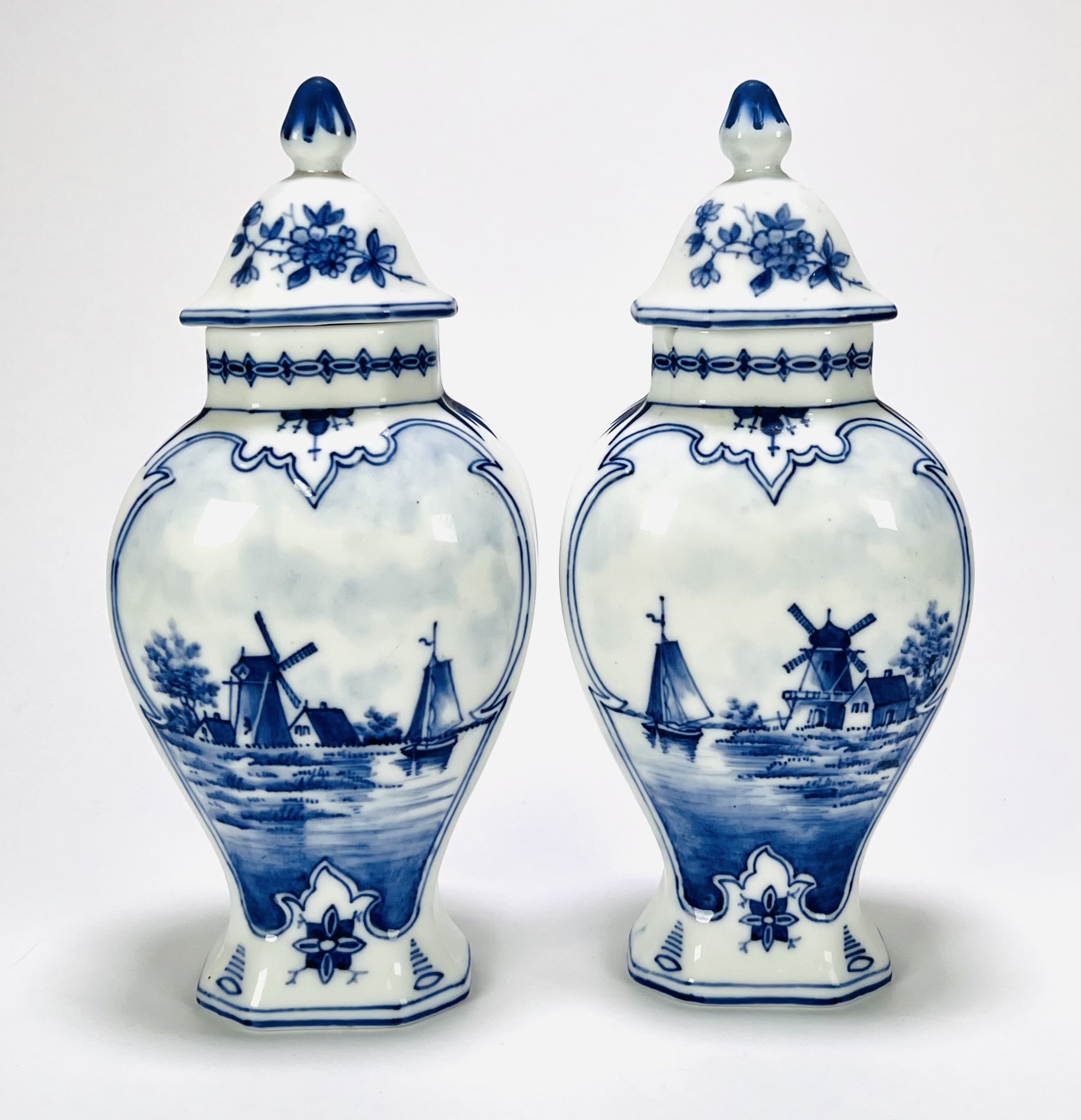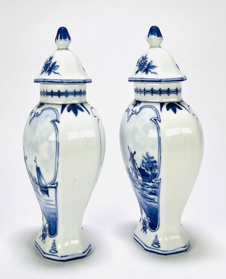 Porseleinen dekselvazen, Delfts blauw, ca. 1940-1970