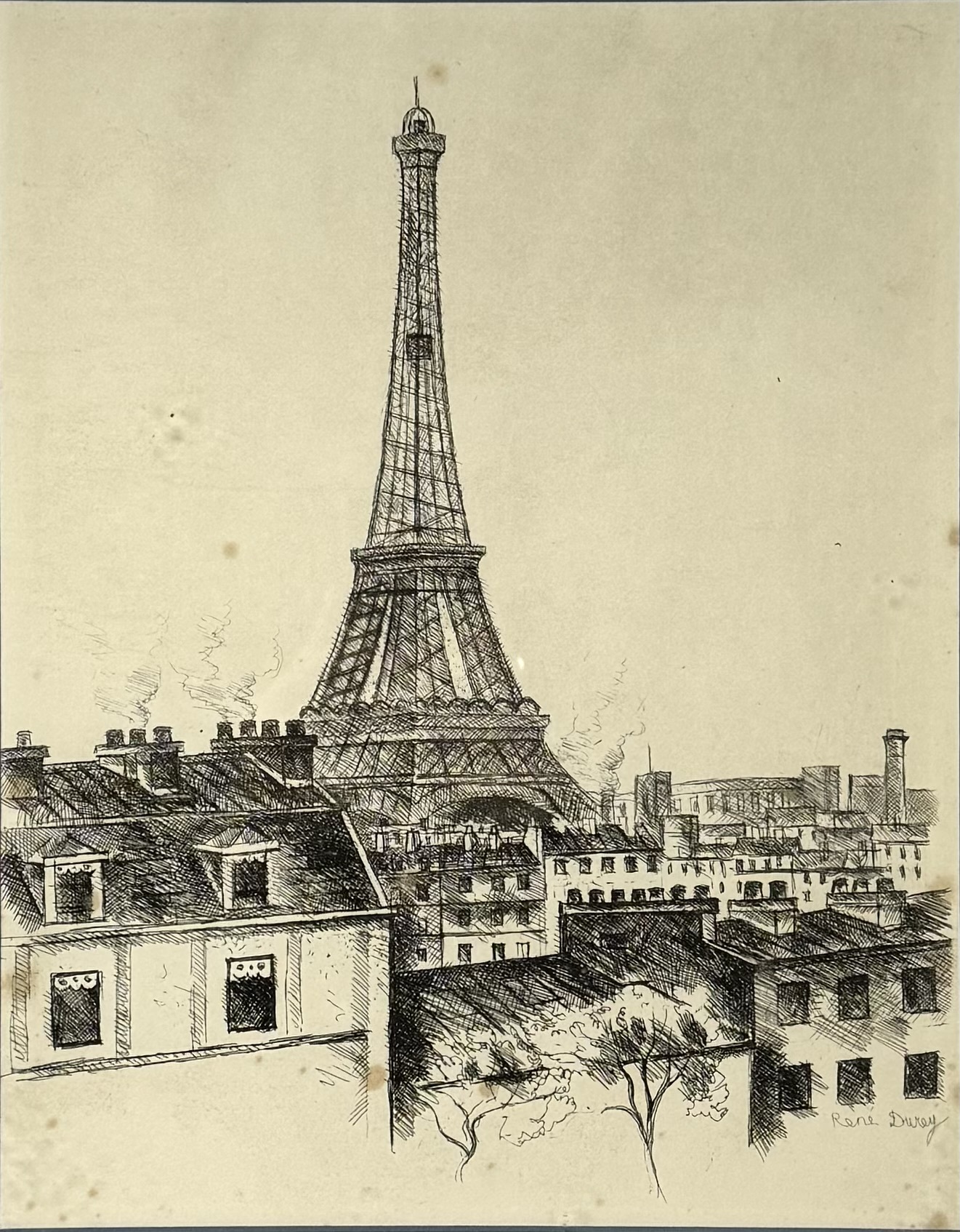 Ets van de Eiffeltoren, op Canson et Montgolfier vélin-papier. Door René Durey (1890-1959). Niet genummerd, conform de editie. Gesigneerd in de plaat rechtsonder. Uitgegeven door L'Imprimerie Daragnès, Parijs; gedrukt door Jean Gabriel Daragnès, Parijs, 14 juli 1937. Wil je het werk in het echt bekijken? Kom naar de kijkdagen op 29, 30 en 31 augustus! |