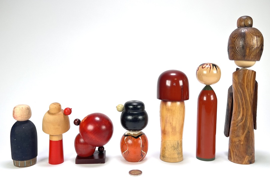 Japanse kokeshi-poppen, ca. midden 20e eeuw