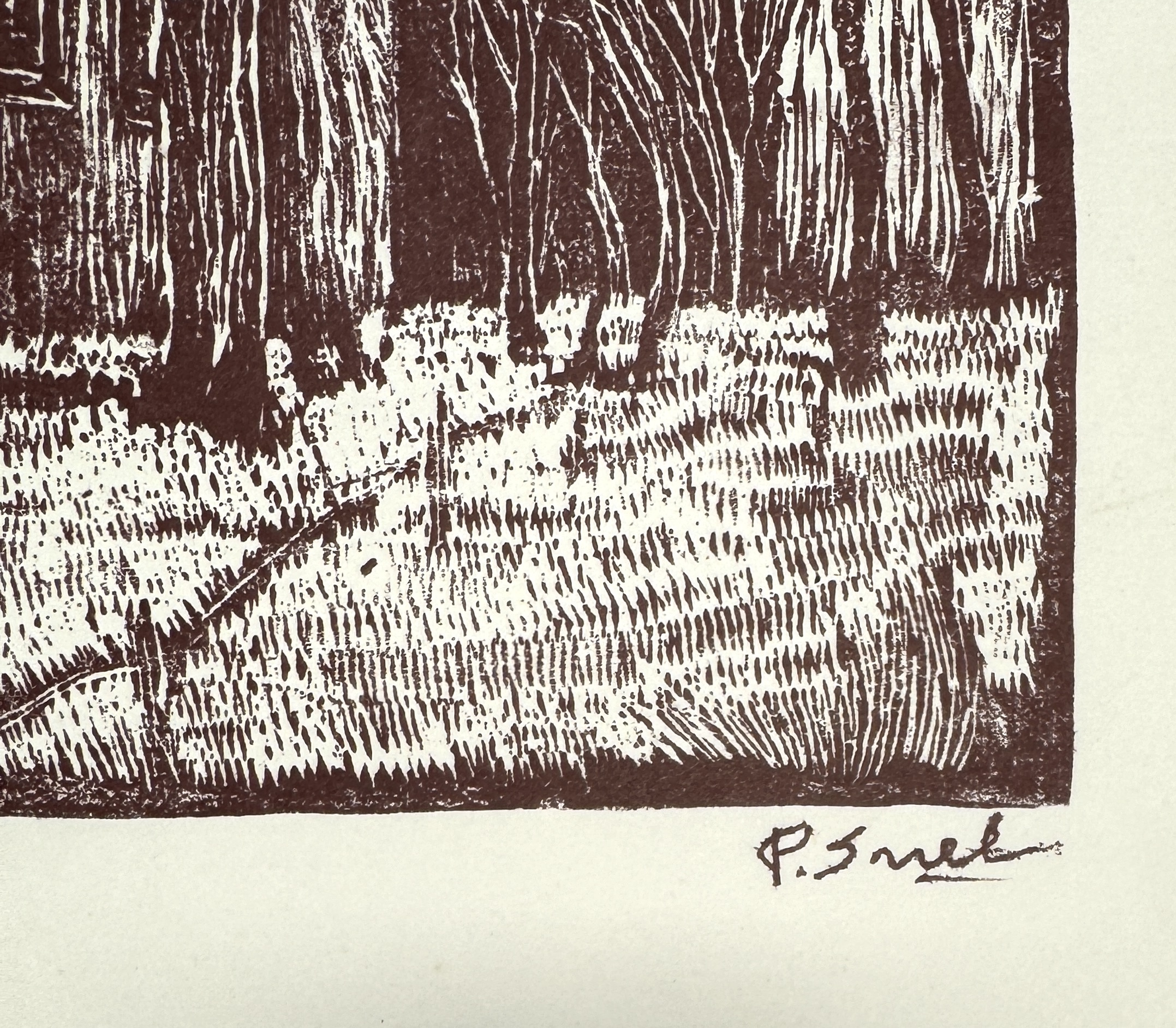 Houtsnede van Kerk den Andel door Piet Snel (1911-1991). Linksonder getiteld en rechtsonder gesigneerd P. Snel. Een expressionistische houtsnede van Piet Snel (1911-1991), die de kerk van Den Andel afbeeldt, midden 20e eeuw. Registreer nu en bied eenvoudig online mee op dit houtsnede. |