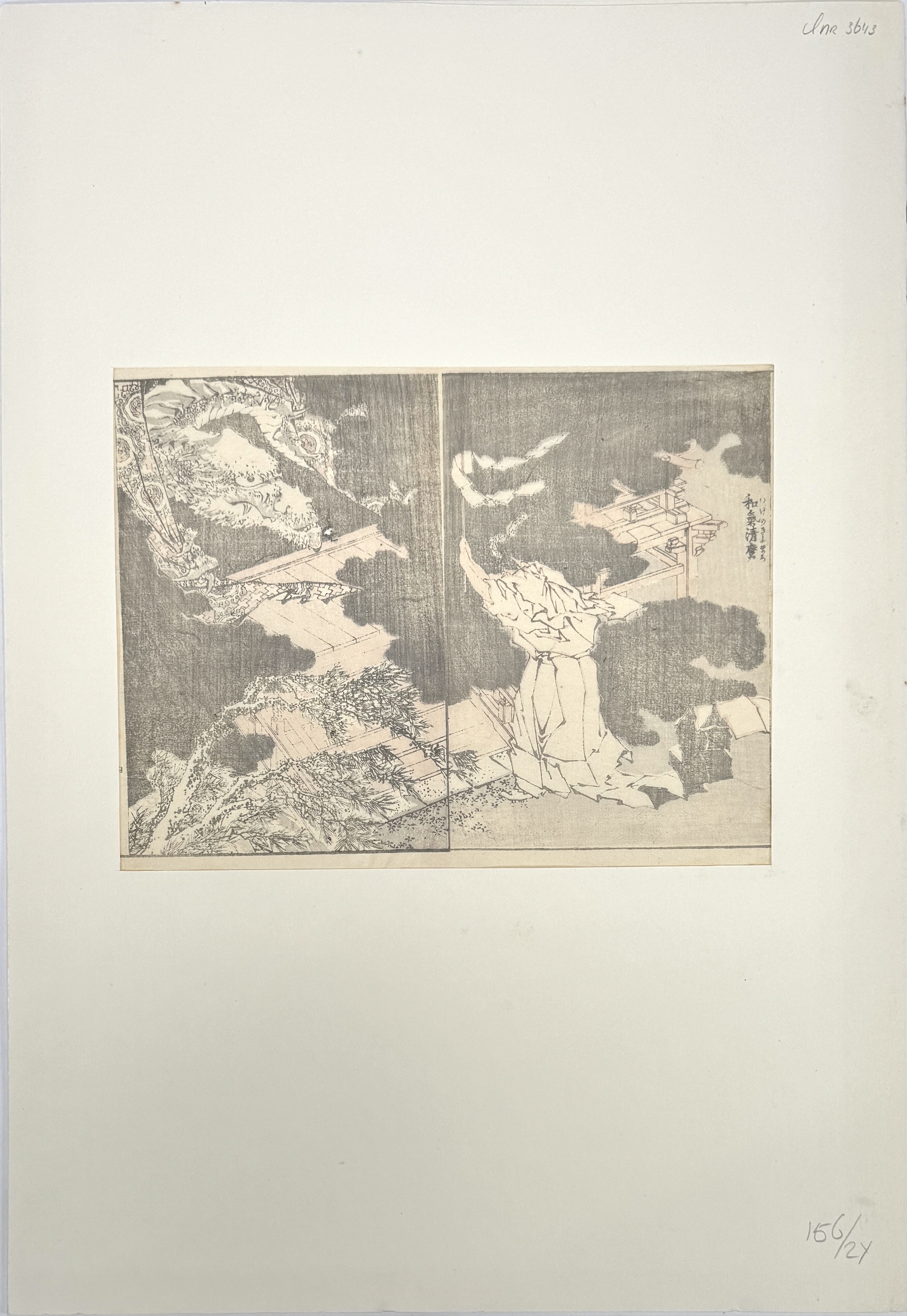 Houtsnede Katsushika Hokusai, draak en vrouw ca. 19e eeuw, Japan