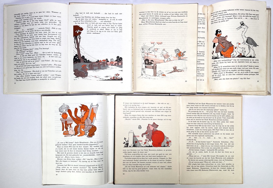 Acht kinderboeken van Phiny Dick (1912–1990) en Zerna van Ark, uitgegeven door Van Goor Zonen Den Haag in de midden 20e eeuw. De gebonden boeken met stofomslag bevatten gekleurde illustraties, deels door Marten Toonder (1912–2005). De titels omvatten onder andere Miezelientje en Kakelien de Kip en De zwerftocht van Pels Pluis en Pier Pegel. De stijl is typerend voor Nederlandse kinderboeken uit die tijd. Klaar om te bieden? Registreer je nu en doe mee aan de veiling! |