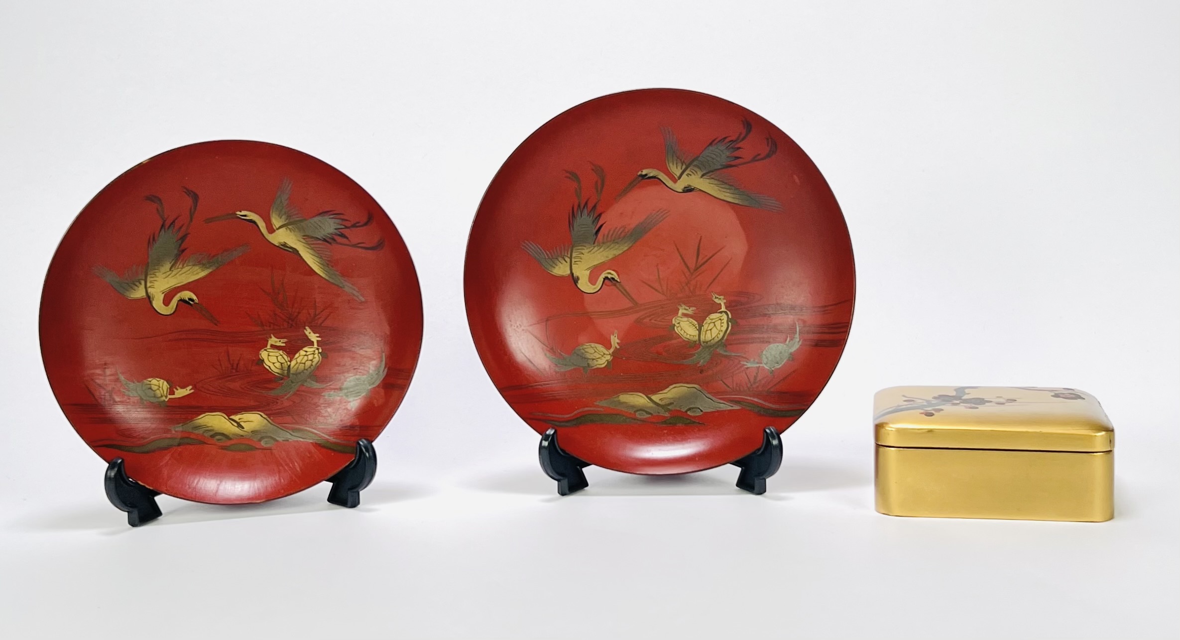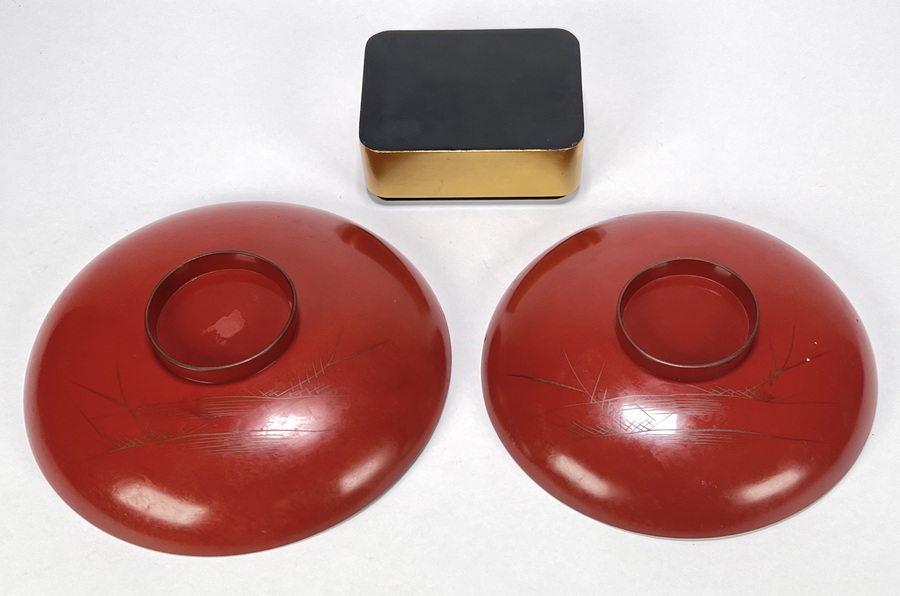Japans lakwerk, kommen en doos, midden 20e eeuw