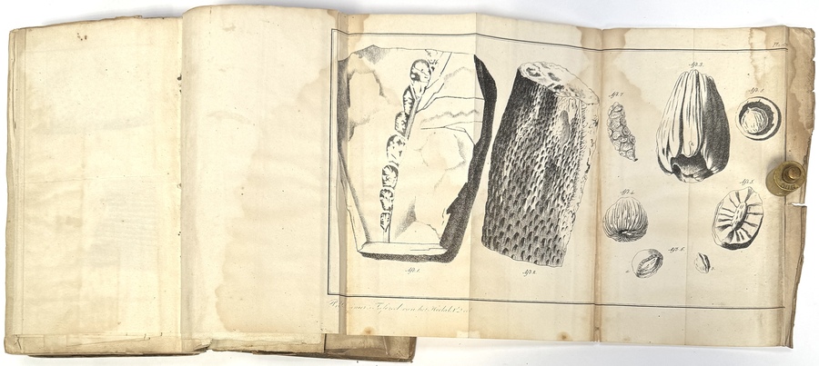 Boek van J.G. Sommer (hoogleraar te Praag), begin 19e eeuw, "Beschrijving der oppervlakte van den aardbol", met uitvouwbare gravures en gebonden in kartonnen band. Platen 6 en 7 ontbreken. Met handgeschreven naam op schutblad. Illustraties tonen geologische en botanische onderwerpen. Eenvoudige boekdruktechniek met typerende wetenschappelijke indeling. Bevat tekst en platen over de geschiedenis van de aarde. Uitgegeven te Amsterdam bij Gebroeders Diederichs (1833). Klaar om te bieden? Registreer je nu en doe mee aan de veiling! |