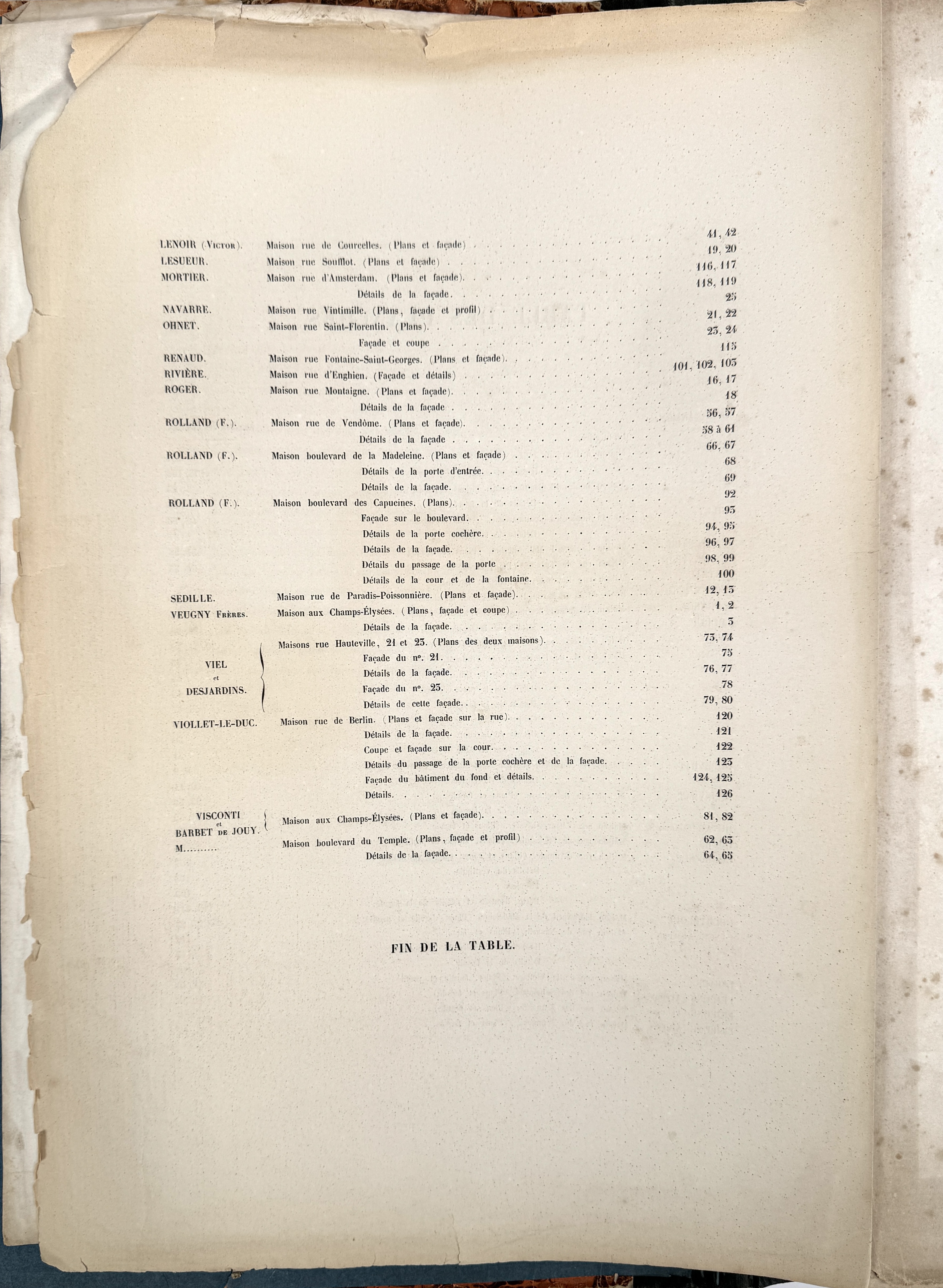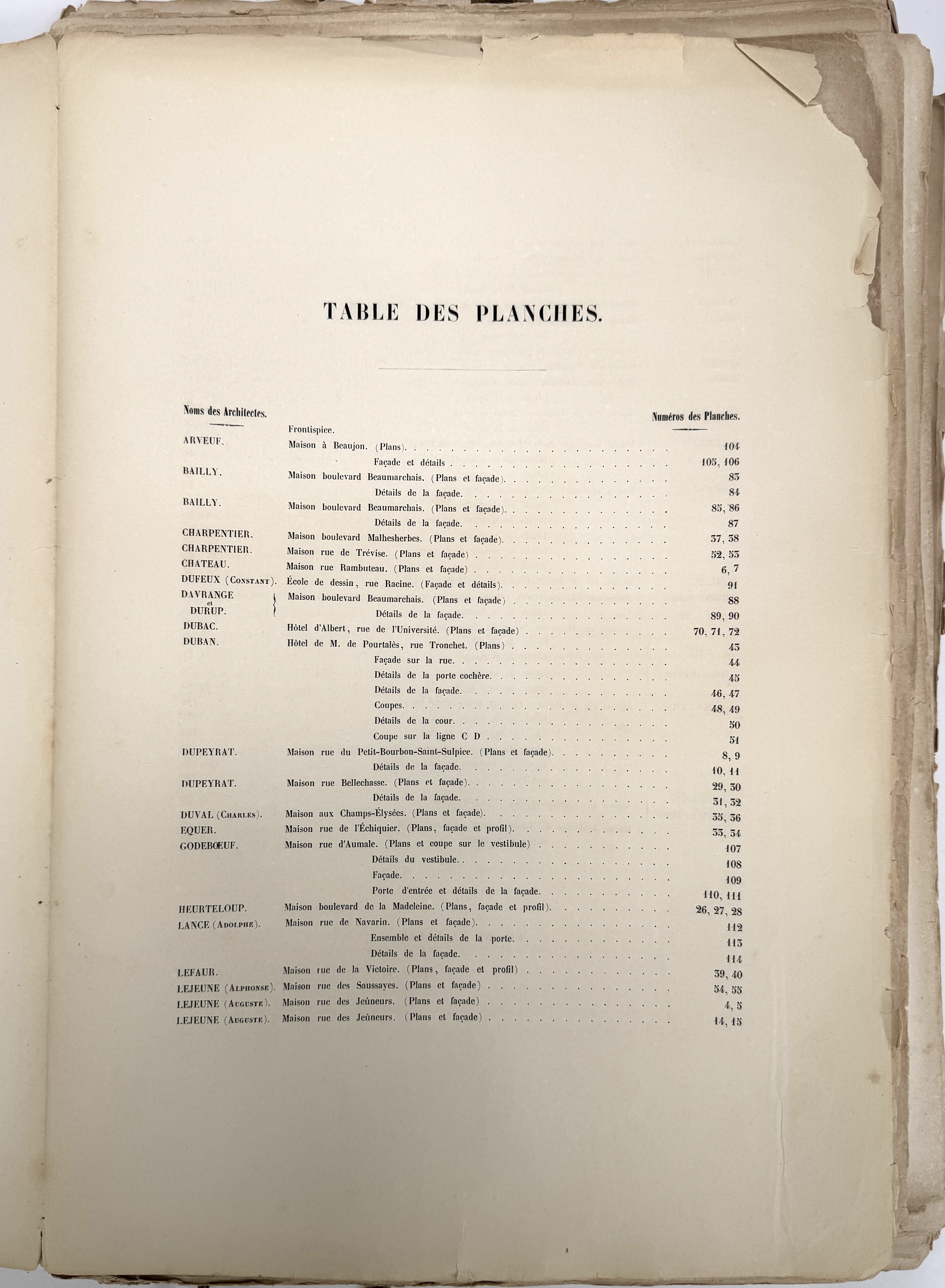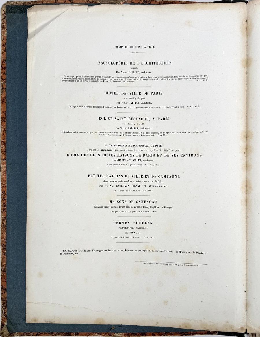 | Kavelnummer en naam | 655. Architectuurboek Victor Calliat "Parallèle des Maisons de Paris", 1850 | |