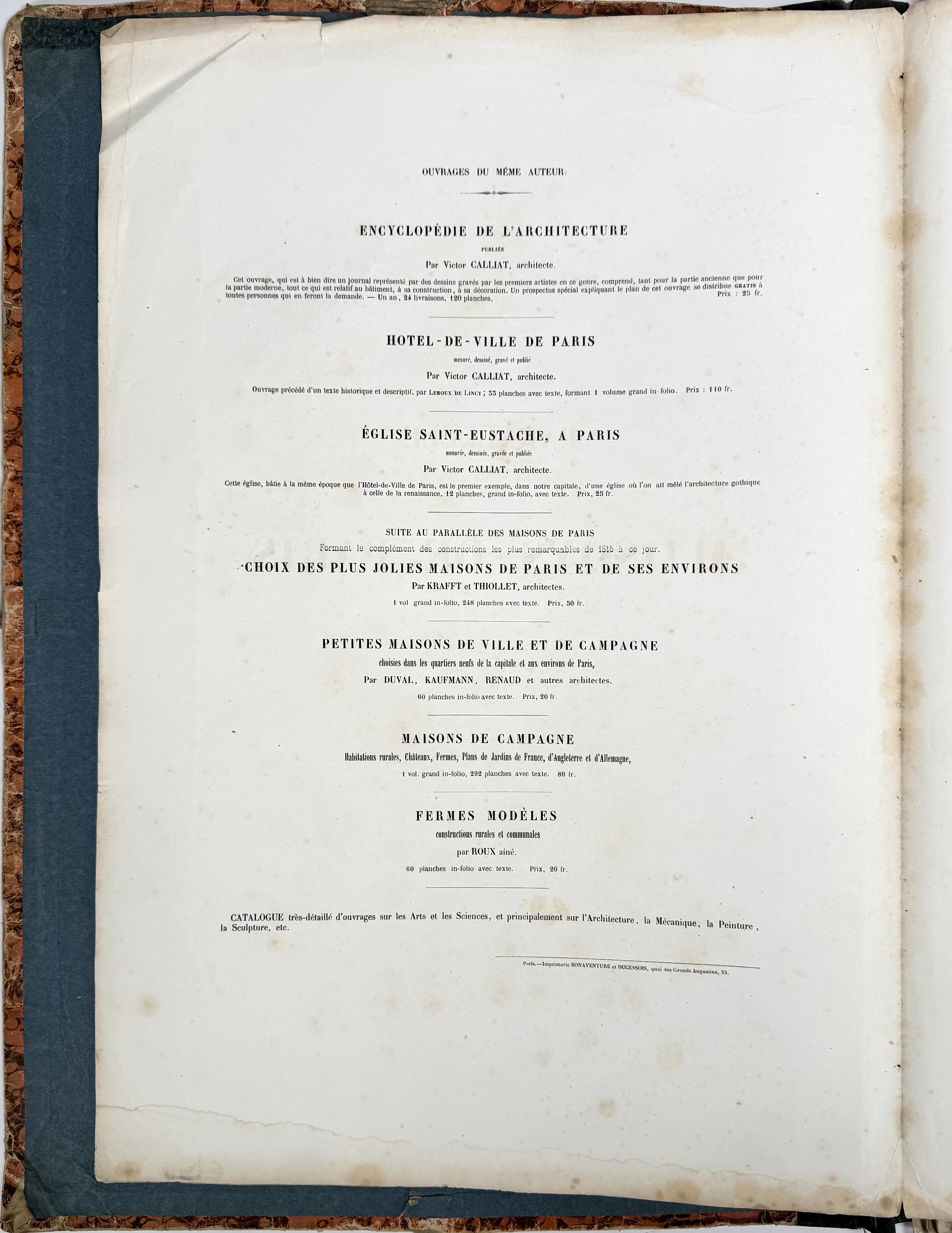 Architectuurboek Victor Calliat "Parallèle des Maisons de Paris", 1850