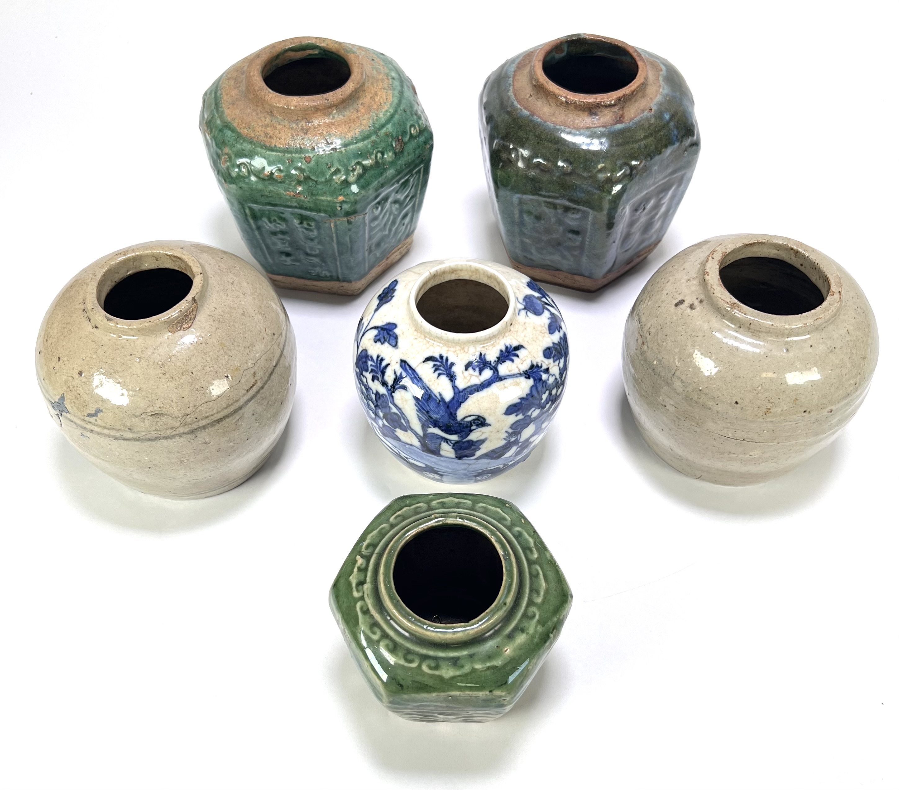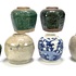 Zes Chinese gemberpotten uit de vroege 20e eeuw, uitgevoerd in geglazuurd aardewerk met zowel handgeschilderde blauw-witte decoraties van vogels en bloemen als reliëfdecoraties in groene glazuur. De gemberpotten hebben ronde en zeshoekige vormen met variaties in decoratieve stijl en afwerking. Wil je direct deelnemen? Plaats vanaf 22 augustus alvast een schriftelijk bod via onze website! |