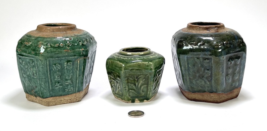 Convoluut aardewerken gemberpotten, begin 20e eeuw, China