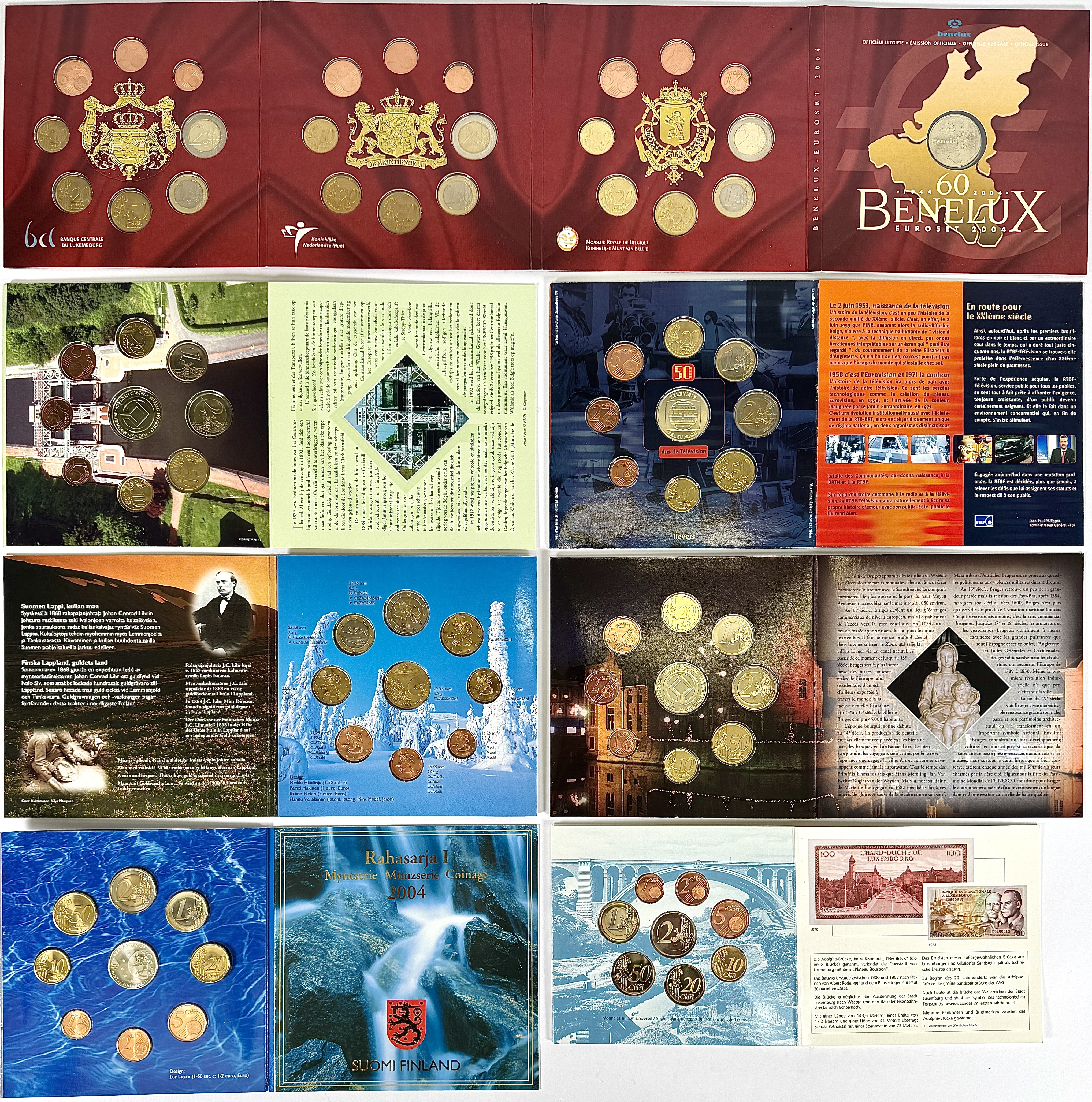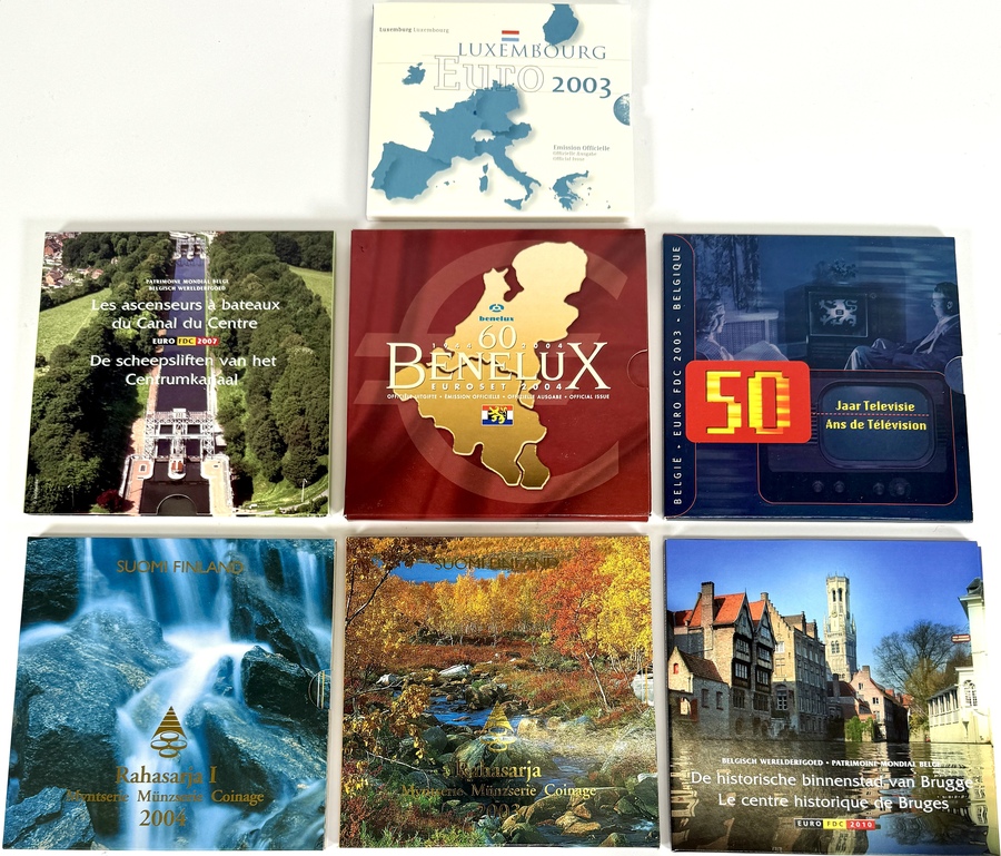 Een verzameling van zeven complete eurosets uit de periode 2003-2005, uitgegeven in hun originele verpakkingen. De sets zijn van diverse landen, waaronder België, Finland en Luxemburg. De munten zijn gemaakt van diverse materialen door middel van muntpersing en herdenken uiteenlopende gebeurtenissen en thema’s. Deze eurosets zelf beoordelen? Je bent welkom op onze kijkdagen op 29, 30 en 31 augustus! |