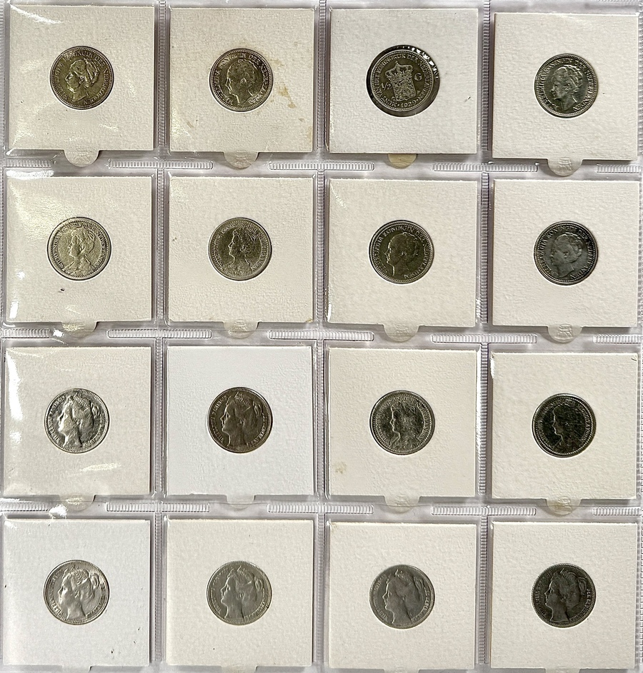 Zestien Nederlandse halve guldens vervaardigd in zilver en geslagen tussen 1898 en 1930 onder koningin Wilhelmina. De munten tonen het portret van de vorstin op de voorzijde en het gekroonde wapen van Nederland op de keerzijde. Kom langs tijdens de kijkdagen (29 t/m 31 augustus) en ontdek de munten zelf! |