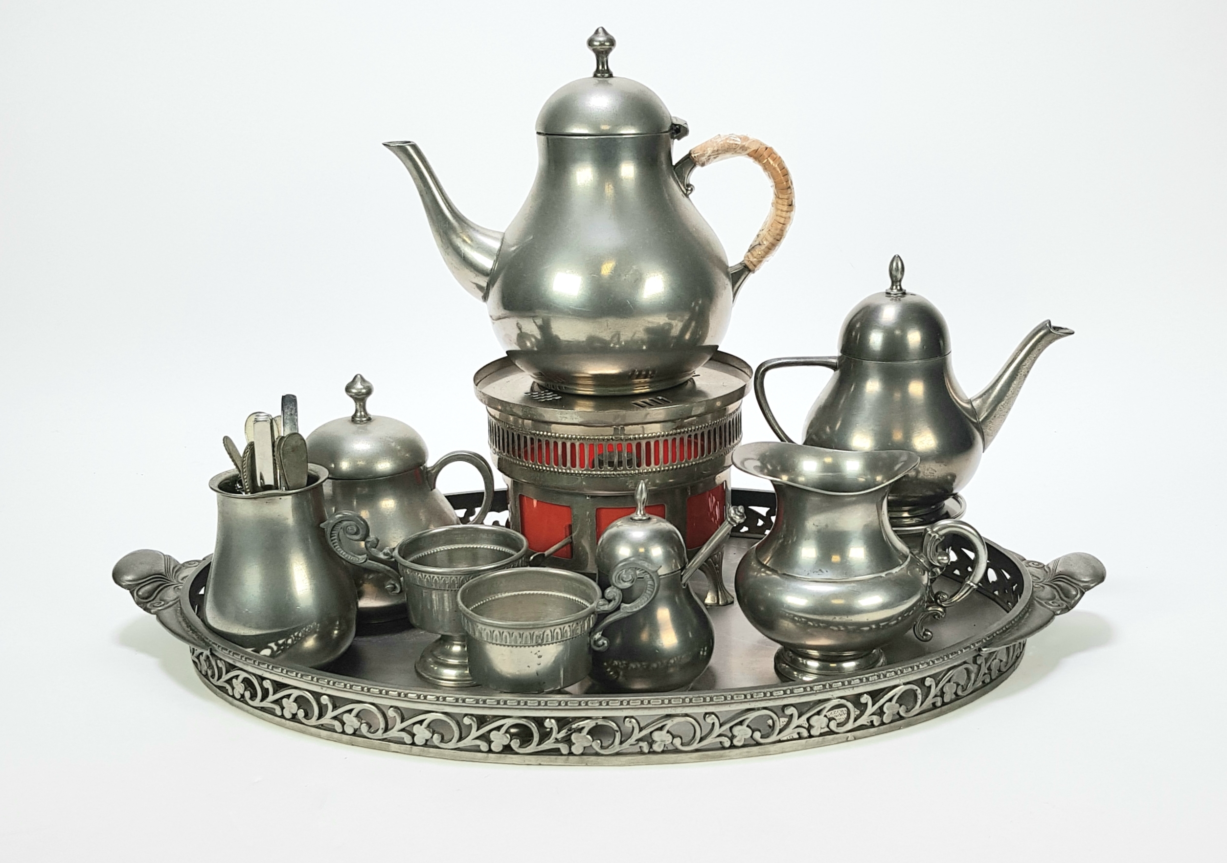 Art Nouveau tinnen theeservies, begin 20e eeuw