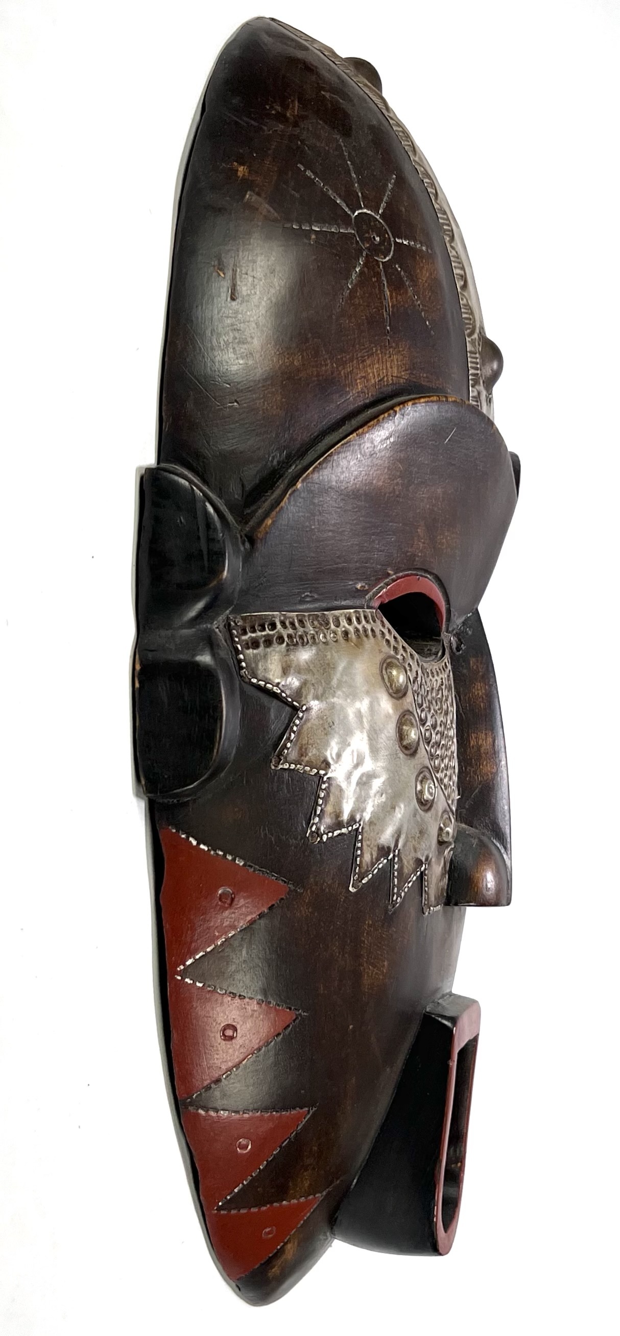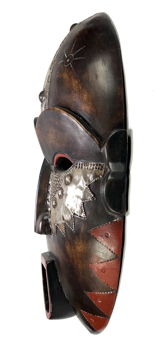 Houten masker met metalen details, ca. midden 20e eeuw, West-Afrika