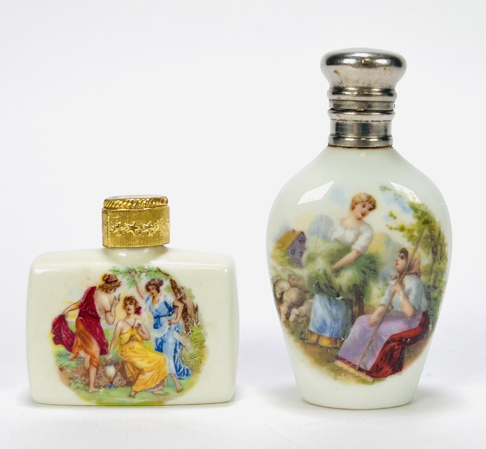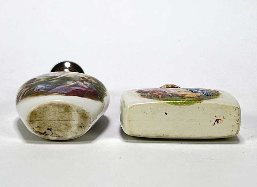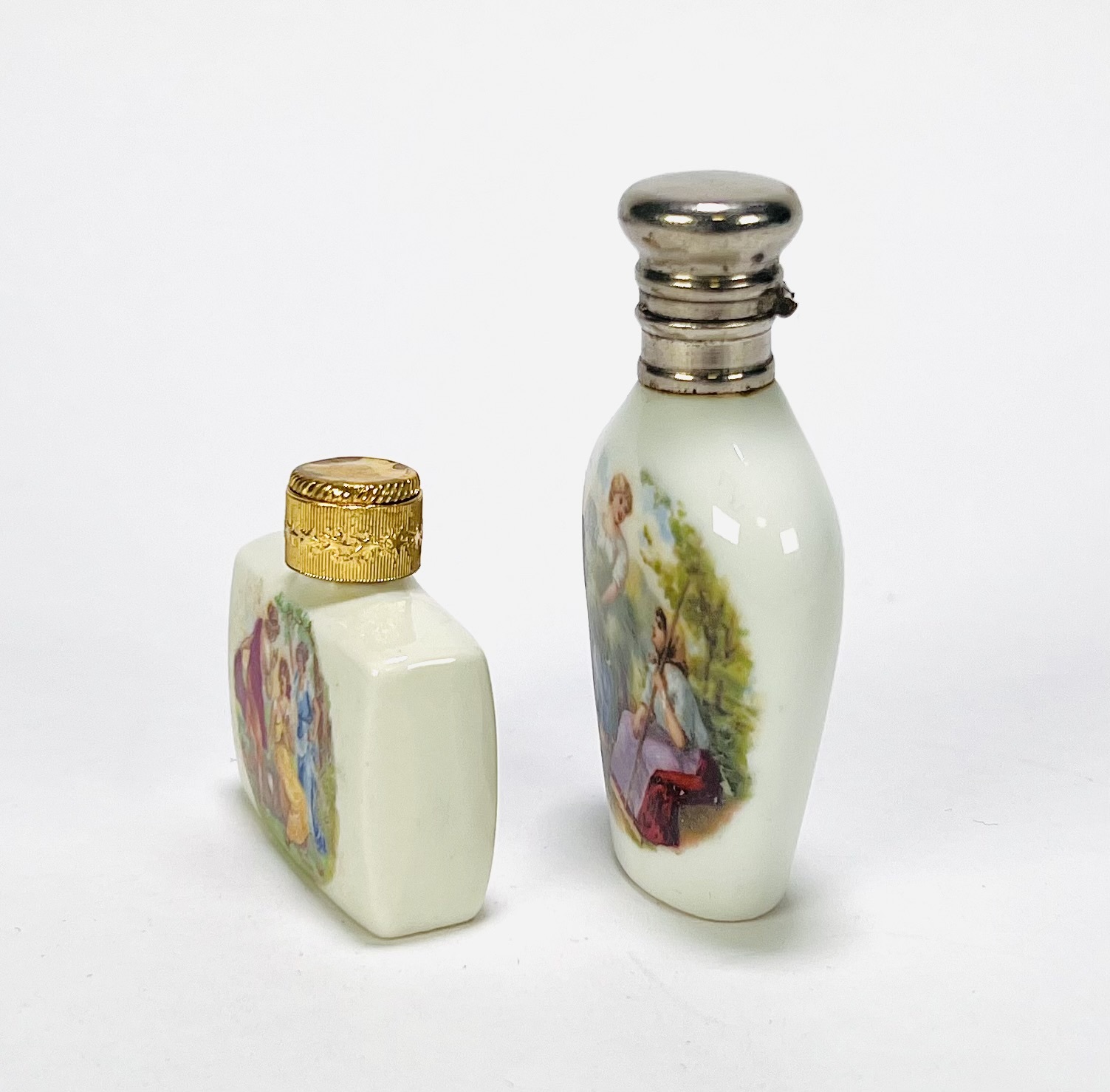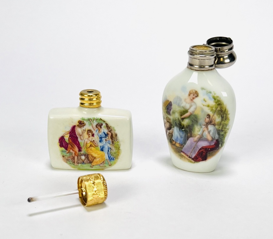 Porseleinen parfumflesjes met romantische scènes, ca. 1900