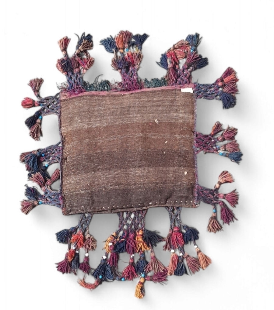 Perzisch kussen met kralen en kwastdecoratie, ca. midden 20e eeuw