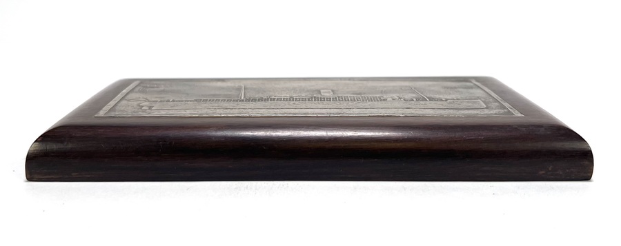 Plaquette van het stoomschip “Op Ten Noort”, uitgevoerd in gegraveerd metaal op houten paneel, midden 20e eeuw. De voorstelling toont het schip in zijaanzicht met links het wapen en de naam “Op Ten Noort” en rechts de tekst “Koninklijke Paketvaart Maatschappij”. Zeker zijn van deelname? Plaats vanaf 22 augustus een schriftelijk bod online! |