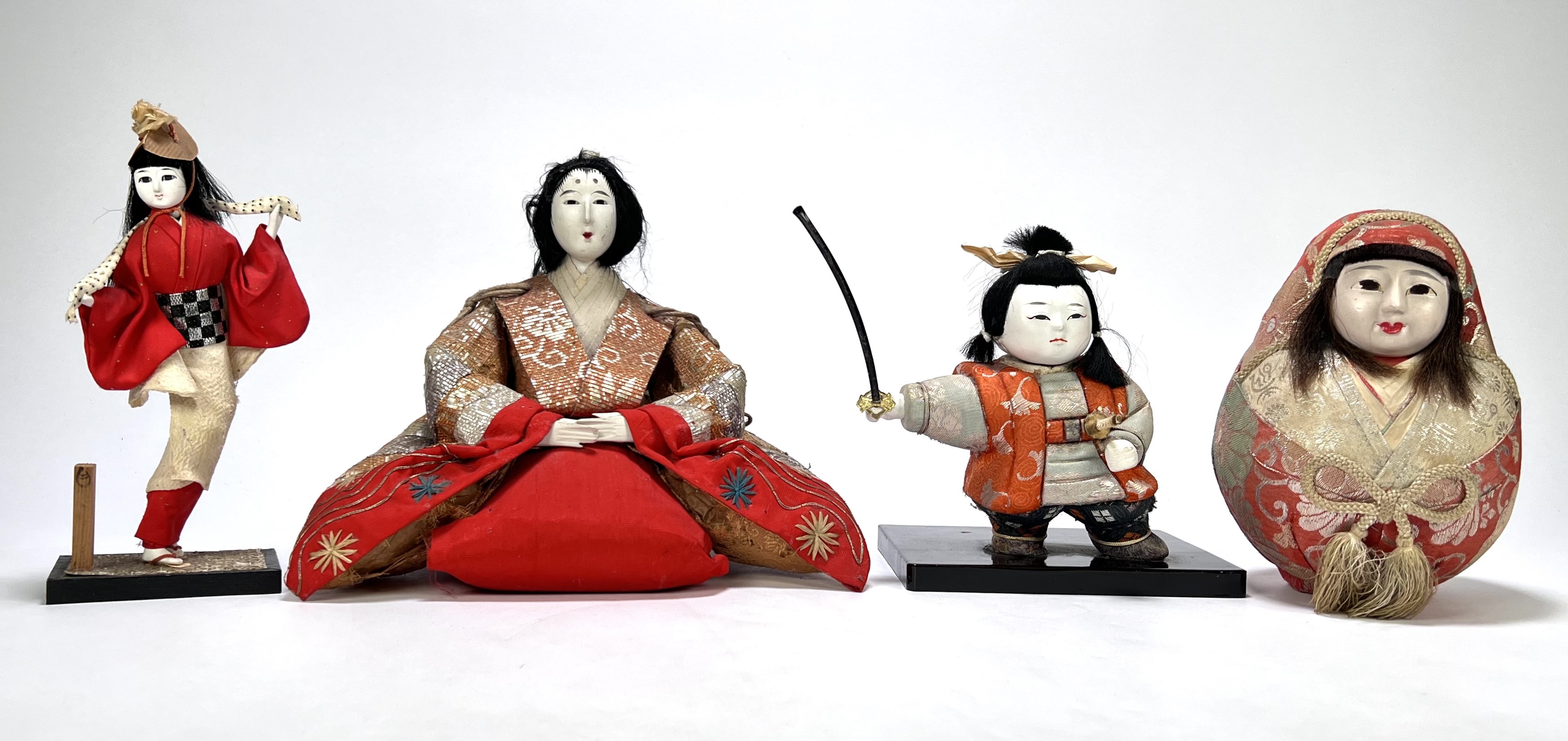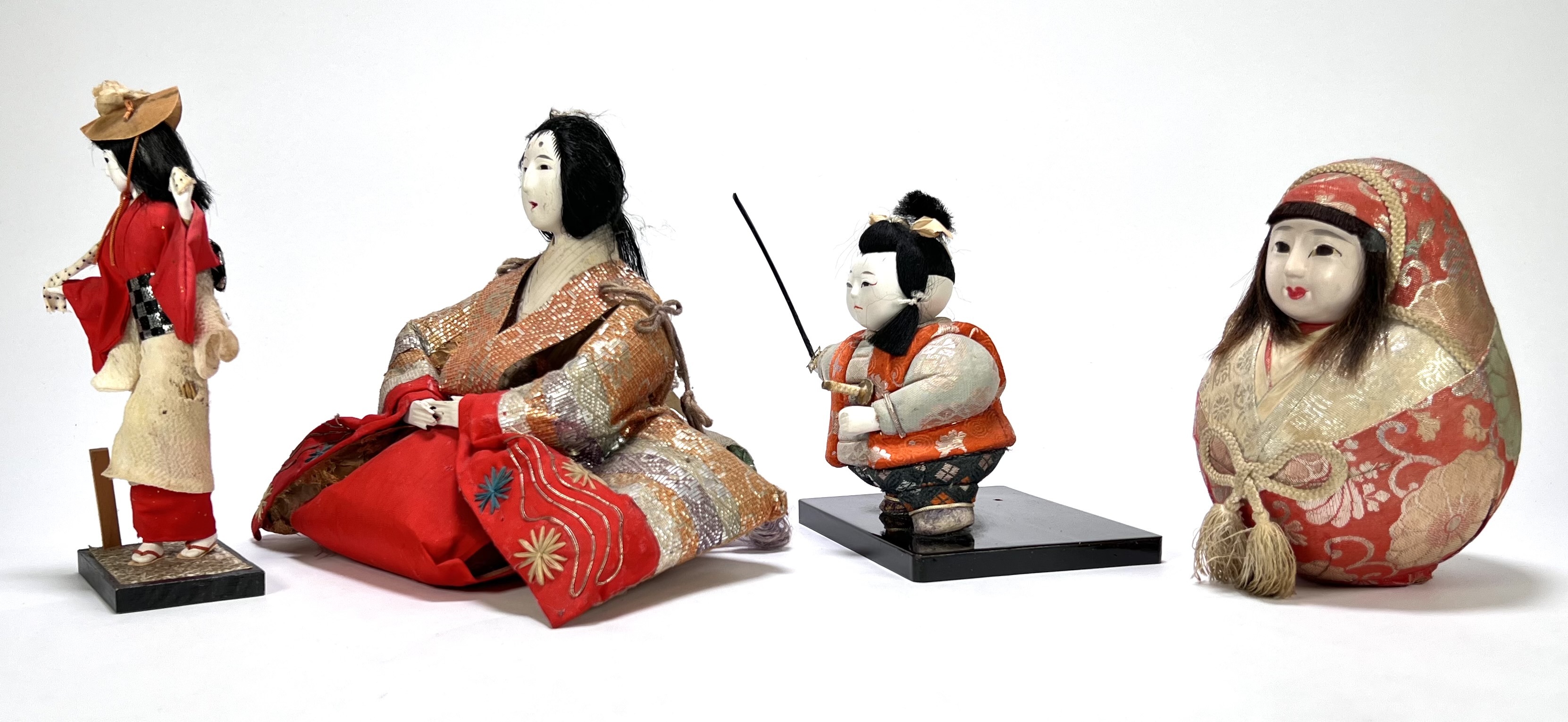 Japanse poppen, papier-maché en textiel, midden 20e eeuw