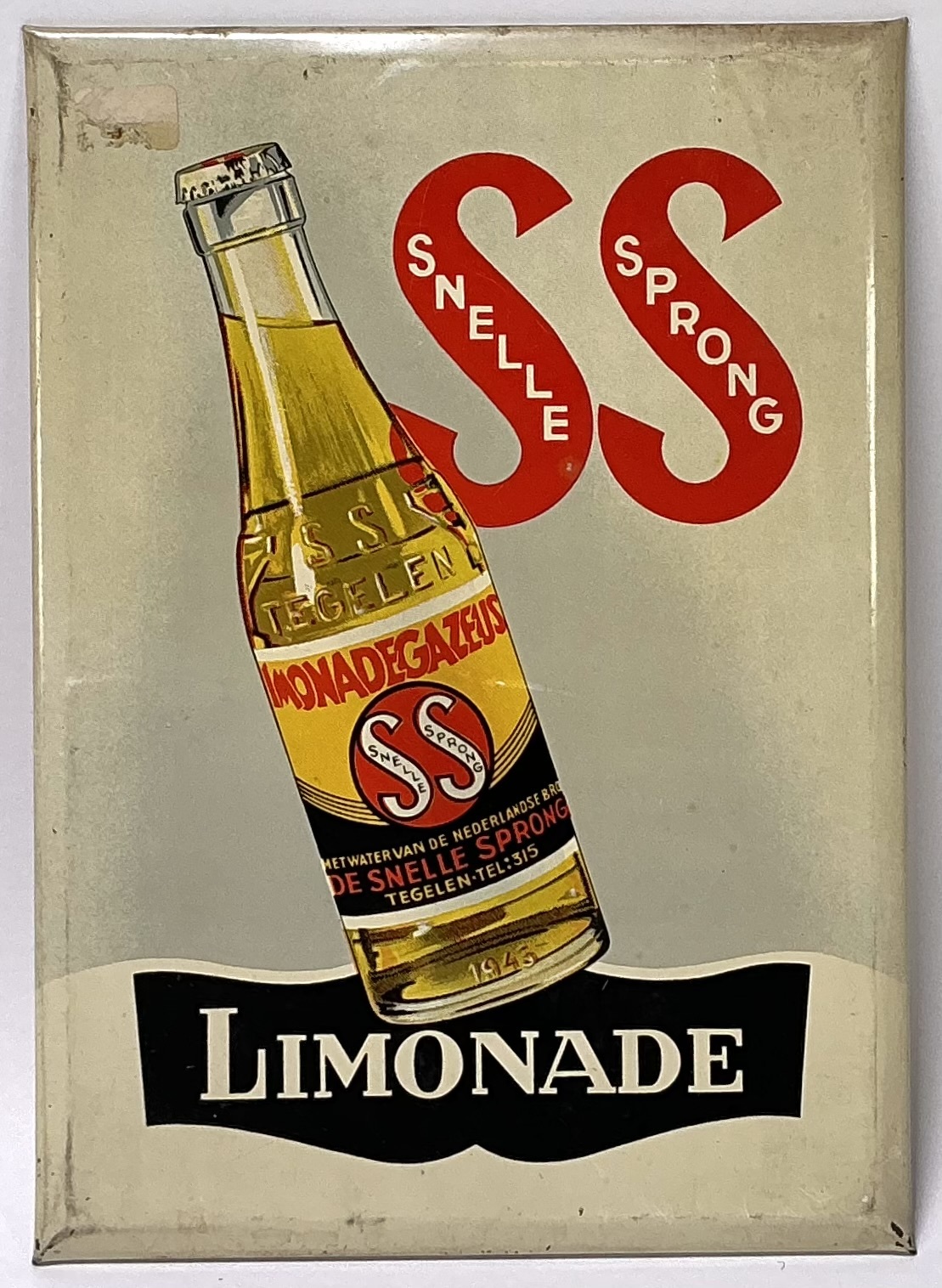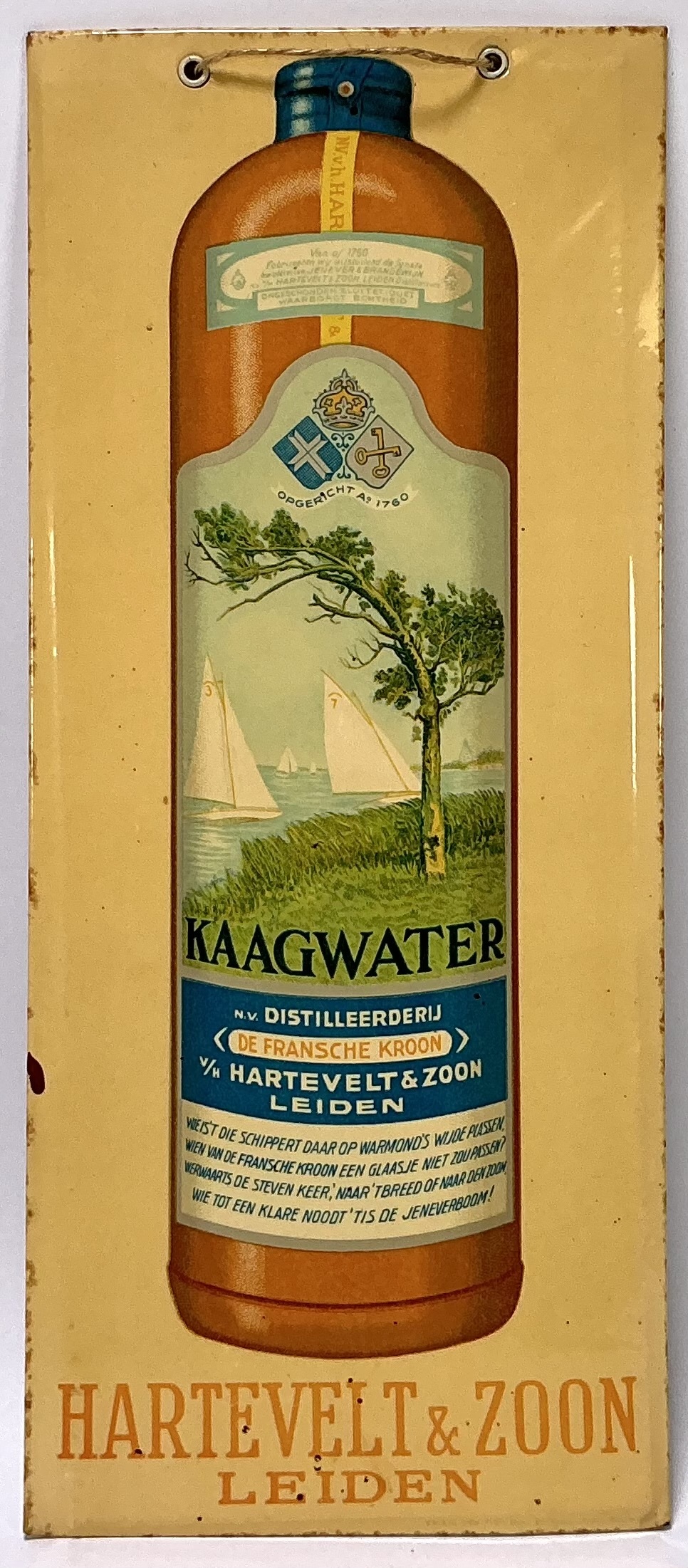 Set van drie vintage blikken reclameborden uit de midden 20e eeuw, uitgevoerd in meerkleurige techniek. De borden tonen reclame-uitingen voor Hartevelt & Zoon Kaagwater, Matrozen Shag en Snelle Sprong limonade. Grafische stijl met typerende illustraties en merktypografie. Voorzien van ophangvoorzieningen aan de achterzijde. Eerst zien voordat je biedt? Bezoek onze kijkdagen op 29, 30 en 31 augustus van 11:00 tot 17:00 uur! |