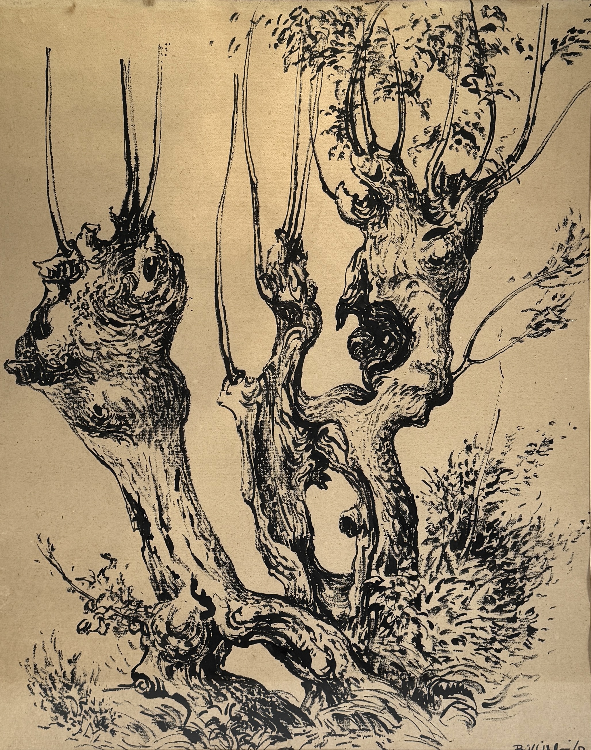 Inkttekening Johan Herman Bolling, “Oude Wilg”, midden 20e eeuw