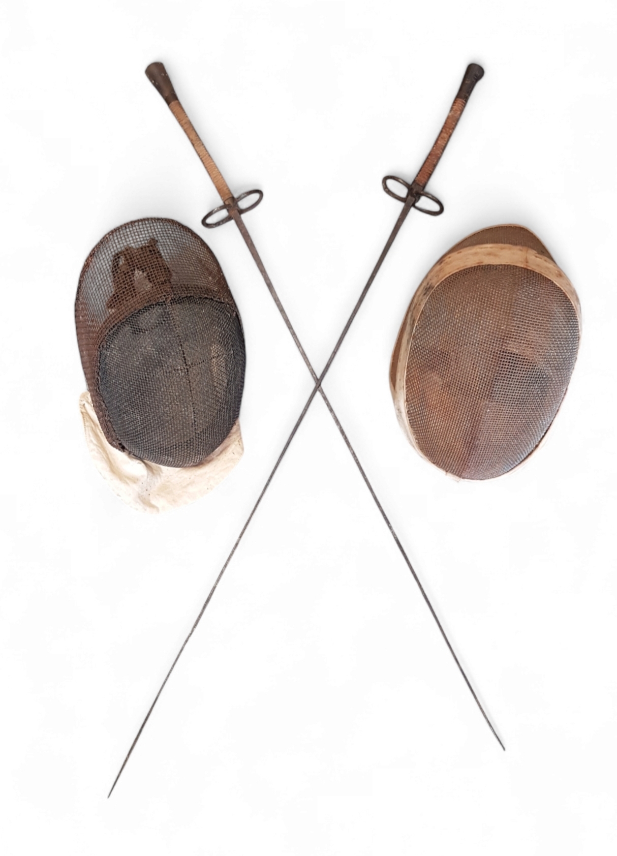 Vintage schermset met twee floretten en maskers, ca. 1930