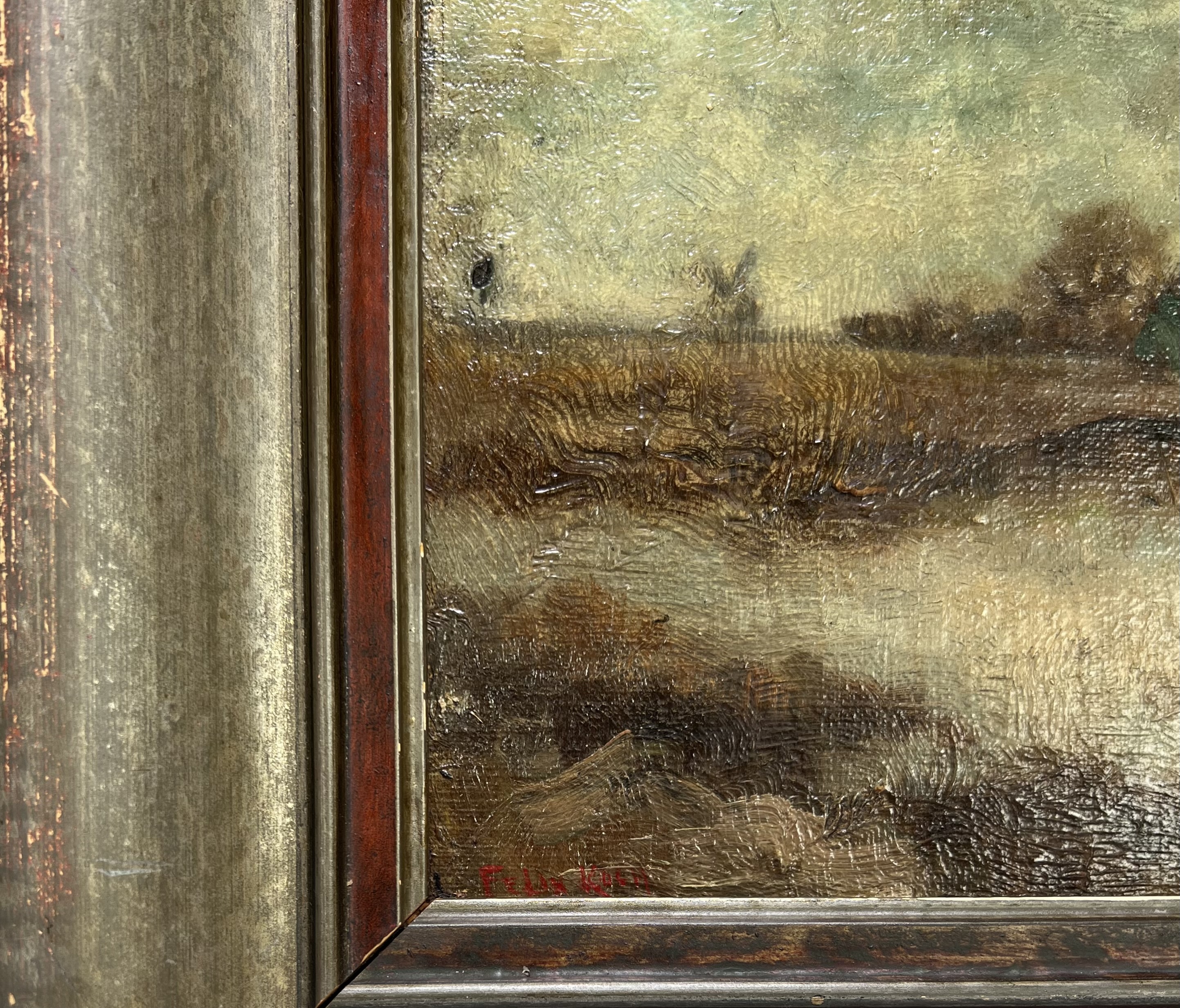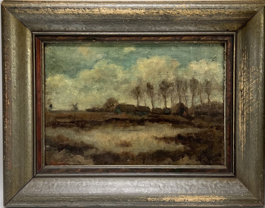 Olieverfschilderij Felix Kohn, polderlandschap, midden 20e eeuw