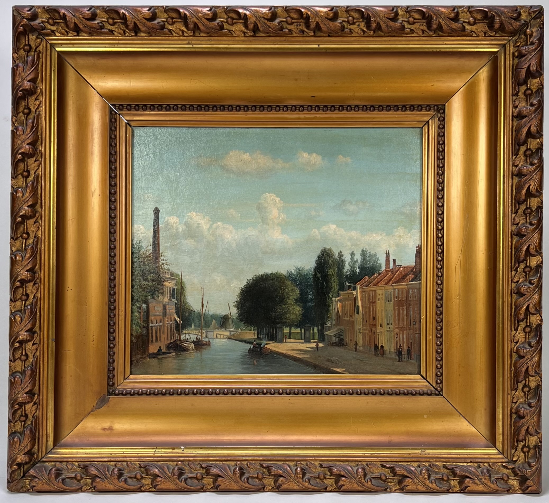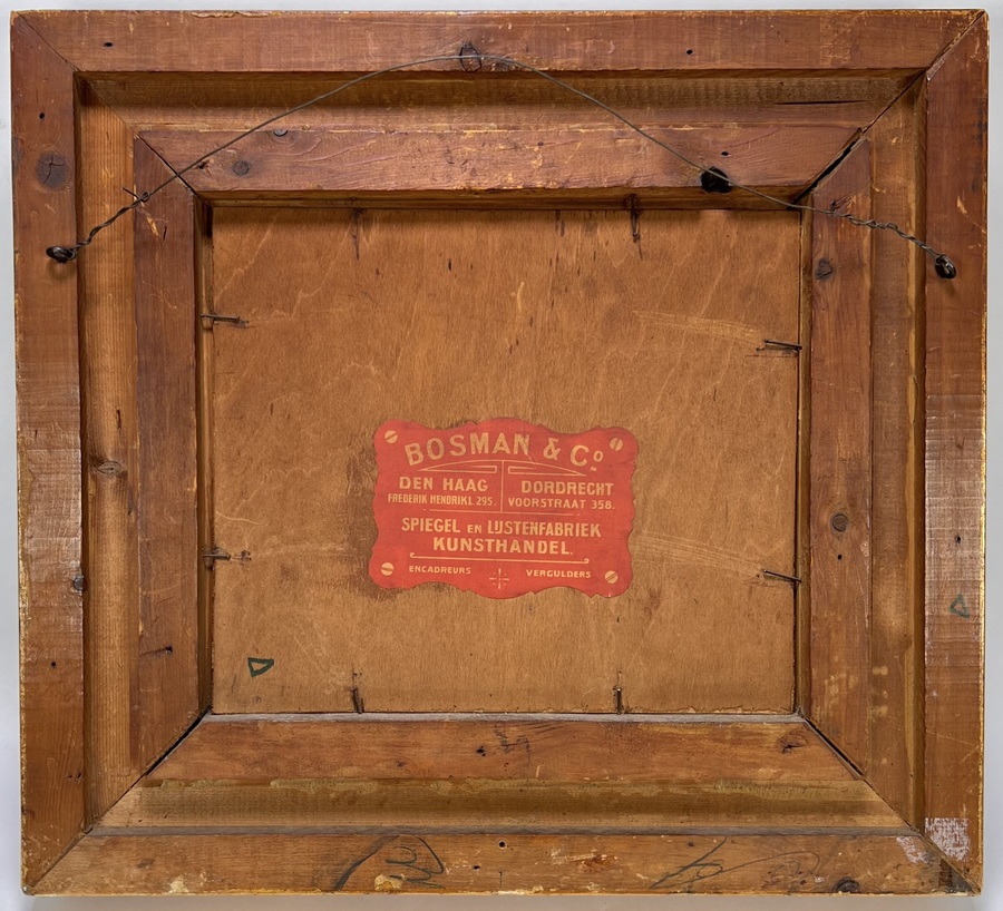 Schilderij olieverf op paneel, uitgevoerd in de stijl van het post-romantisch realisme, Nederland, eind 19e eeuw. Rivier/kanaalzicht met klassieke bebouwing, schepen, bomenrij en een molen in de diepte. Subtiele lichtwerking in de lucht en reflecties op het water. Ongesigneerd. Herkomst gemarkeerd door een etiket van kunsthandel Bosman & Co., actief in Den Haag en Dordrecht. Wil je direct deelnemen? Plaats vanaf 22 augustus alvast een schriftelijk bod via onze website! |