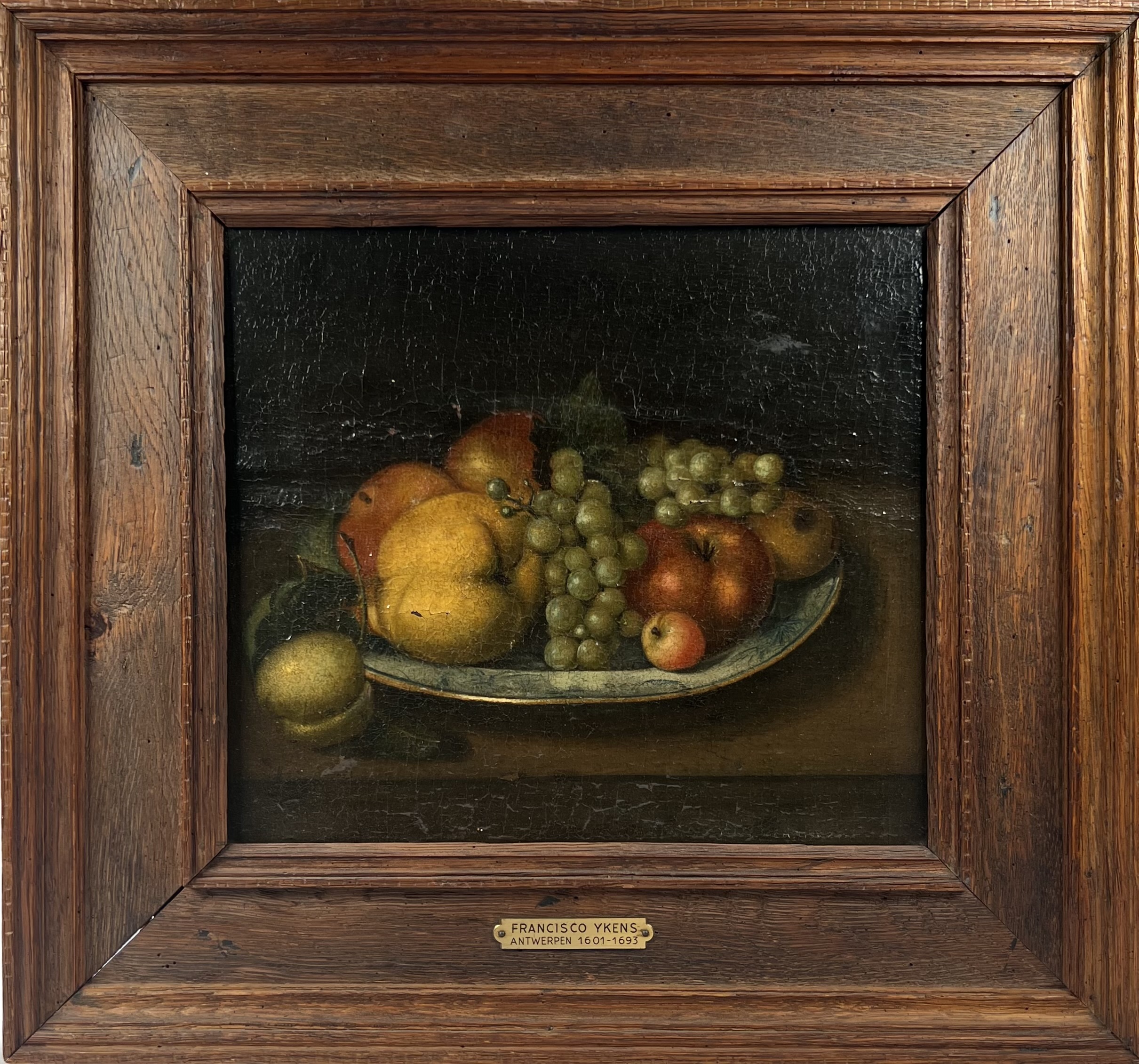 Een 17e-eeuws Vlaams barok stilleven toegeschreven aan Francisco Ykens (1601–1693), omstreeks 1660, uitgevoerd in olieverf op paneel. Het schilderij toont een compositie van diverse vruchten op een schaal. Het werk is gemonteerd in een houten lijst. Geïnteresseerd? Bezoek onze kijkdagen op 29, 30 of 31 augustus van 11:00 tot 17:00 uur! |