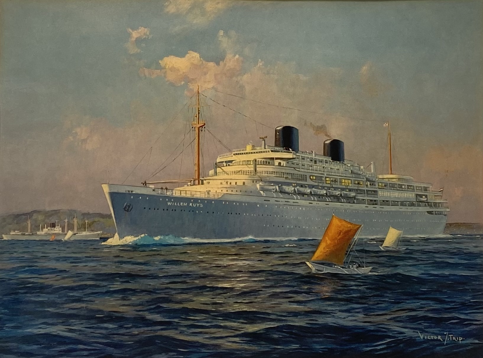 Olieverfschilderij Victor Trip, “MS Willem Ruys”, midden 20e eeuw