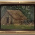 Schilderij van een onbekende maker, gedateerd circa 1890-1920, olieverf op doek. Het realistische landschap toont een boerenwoning met rieten dak, omringd door groen, met landbouwwerktuigen en scharrelende kippen. De schilderstijl kenmerkt zich door zichtbare penseelstreken en een ingetogen kleurenpalet, ongesigneerd. Herkomst Galerie Wiek XX Bad Nieuweschans.