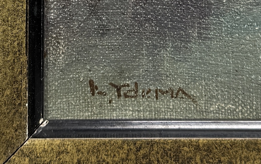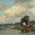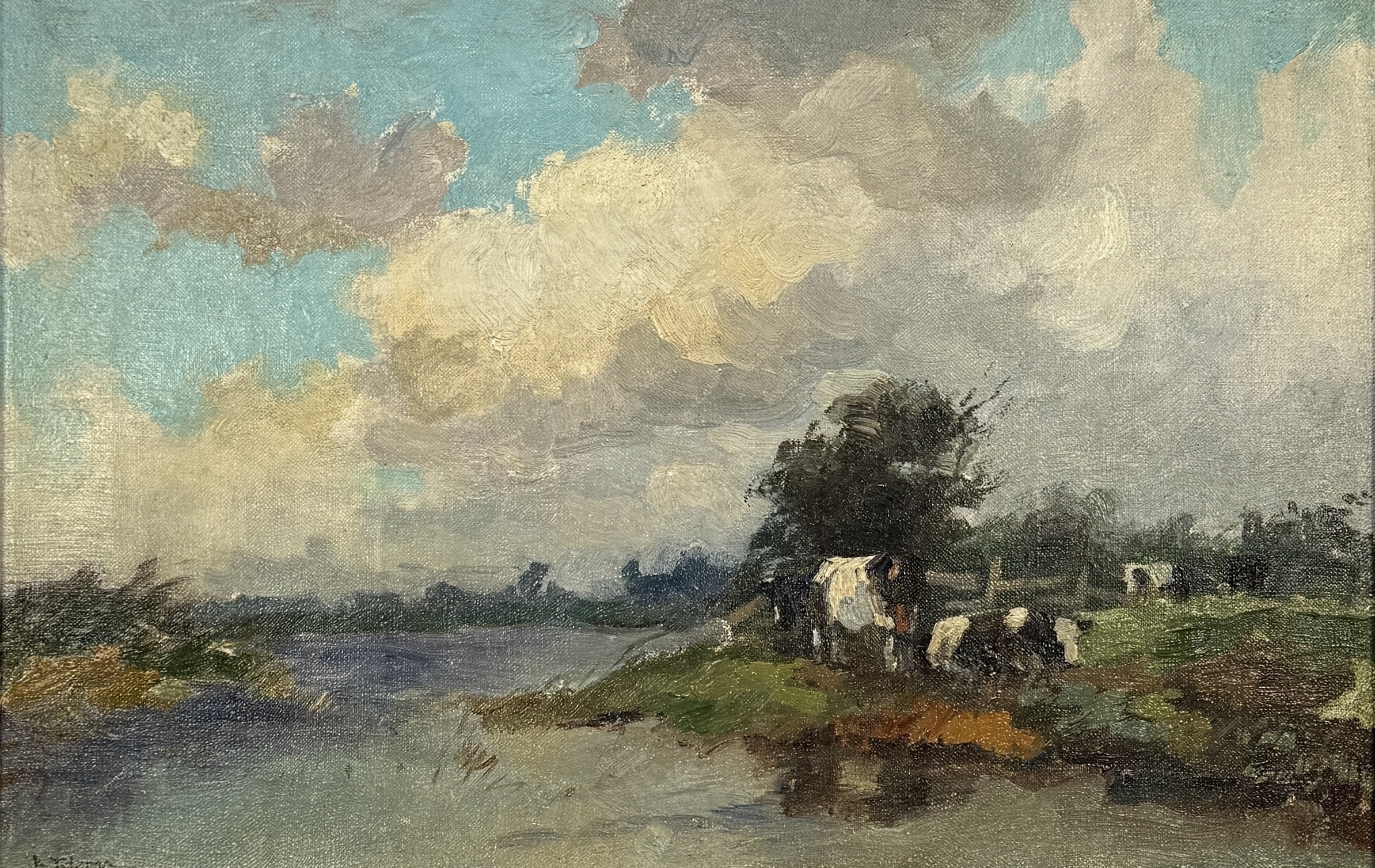 Olieverfschilderij Ydema, rivierlandschap, midden 20e eeuw