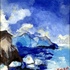 Olieverfschilderij Ensa, zeegezicht met bergen, 1998, Italië