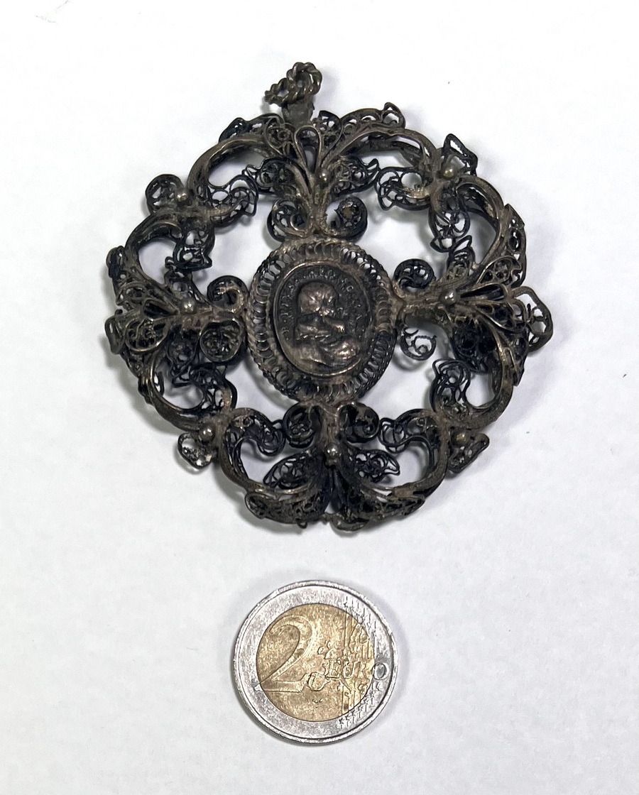 | Afmetingen | Hanger/broche met vrouwenportret lengte 6,7 cm en breedte 4,2 cm. | |