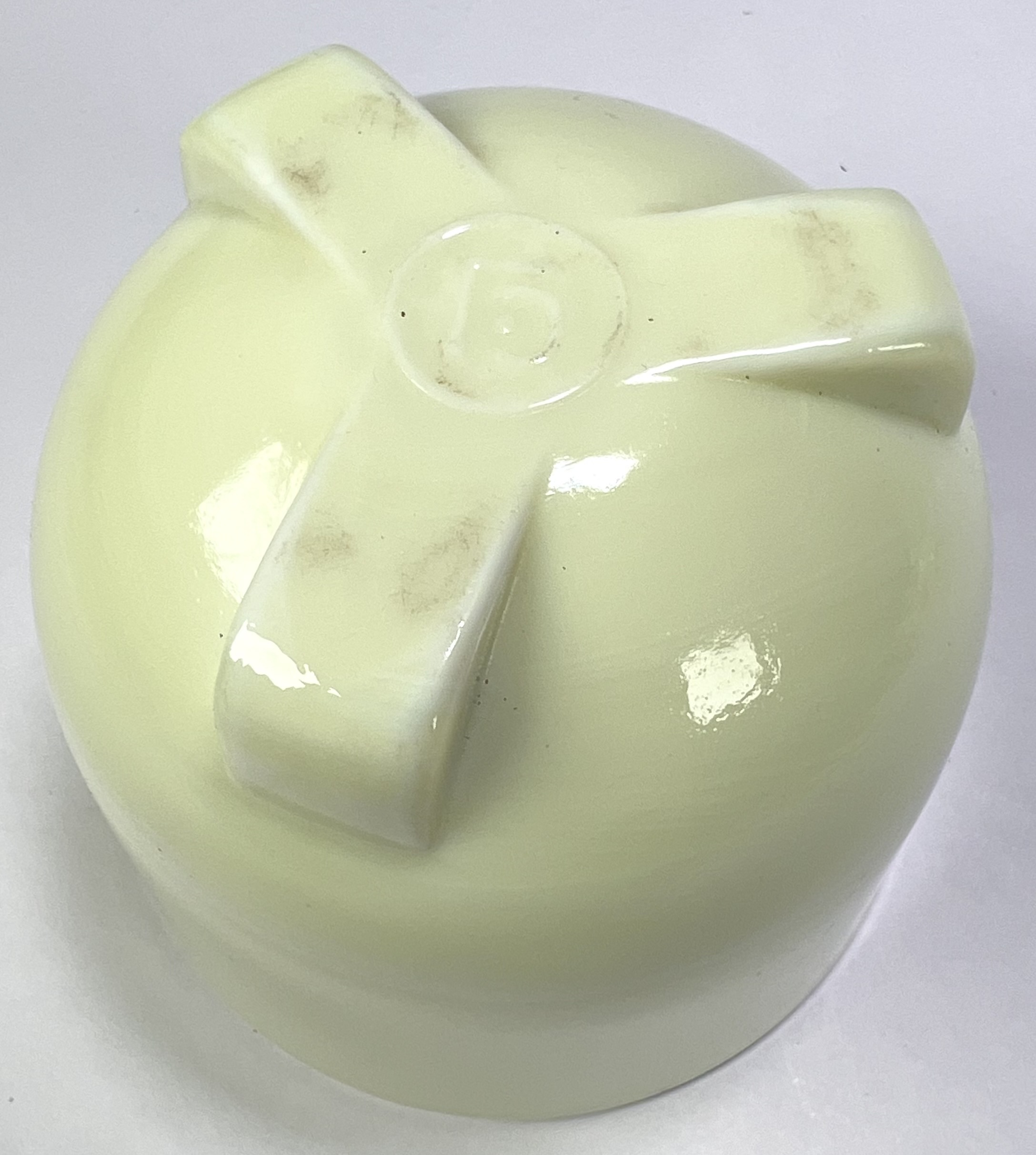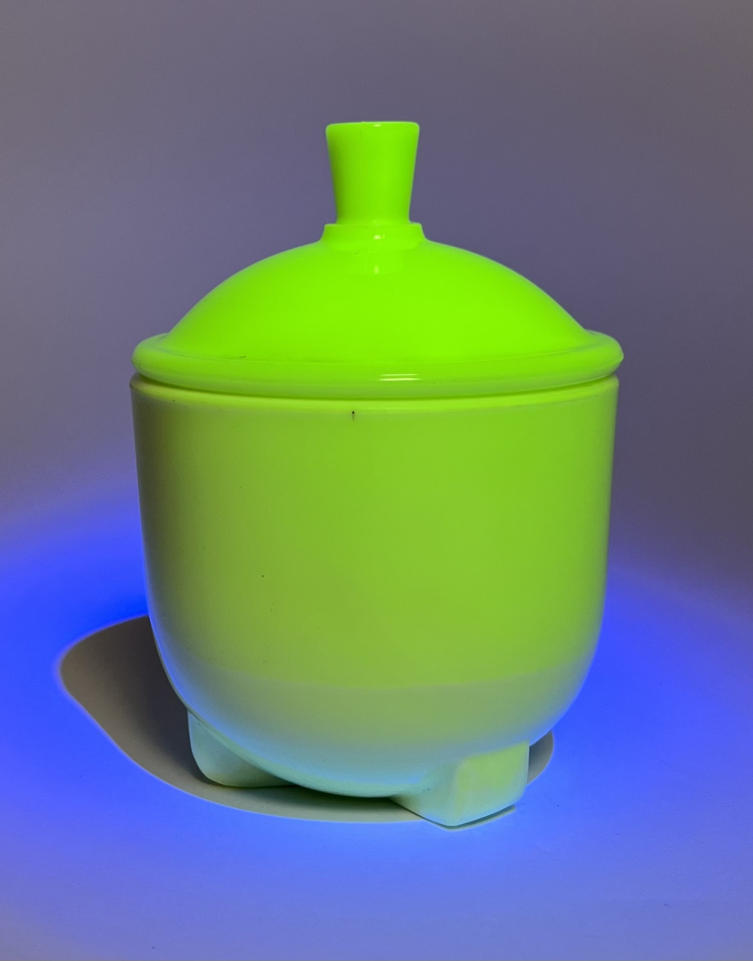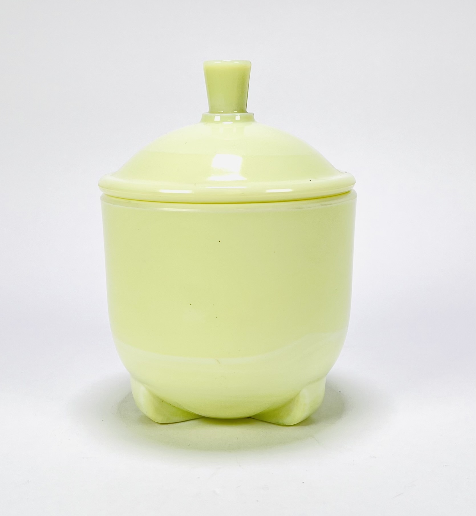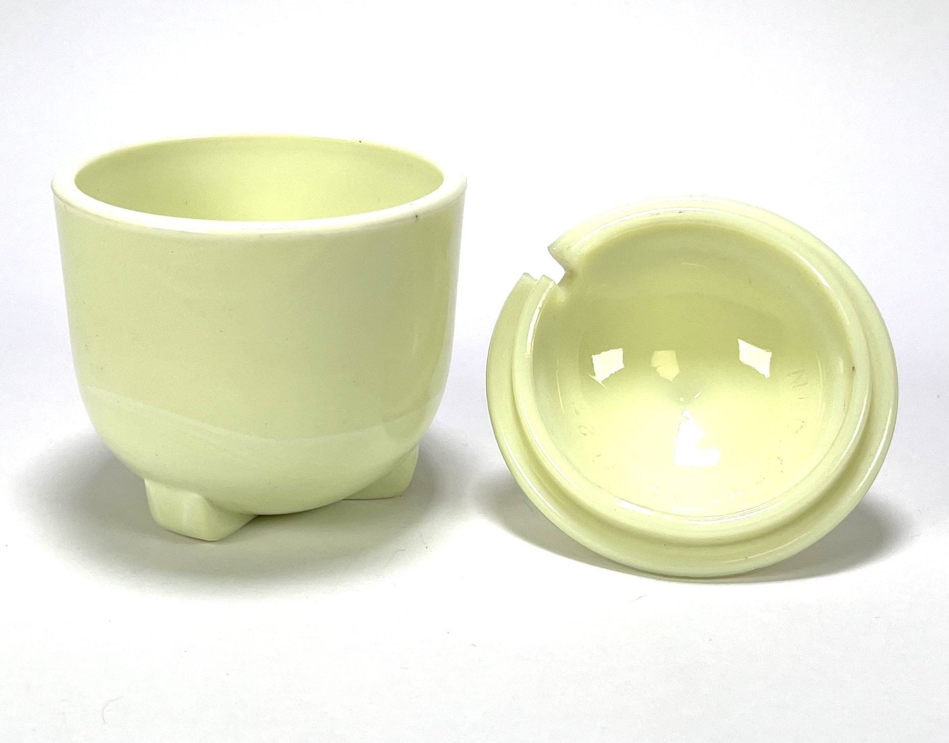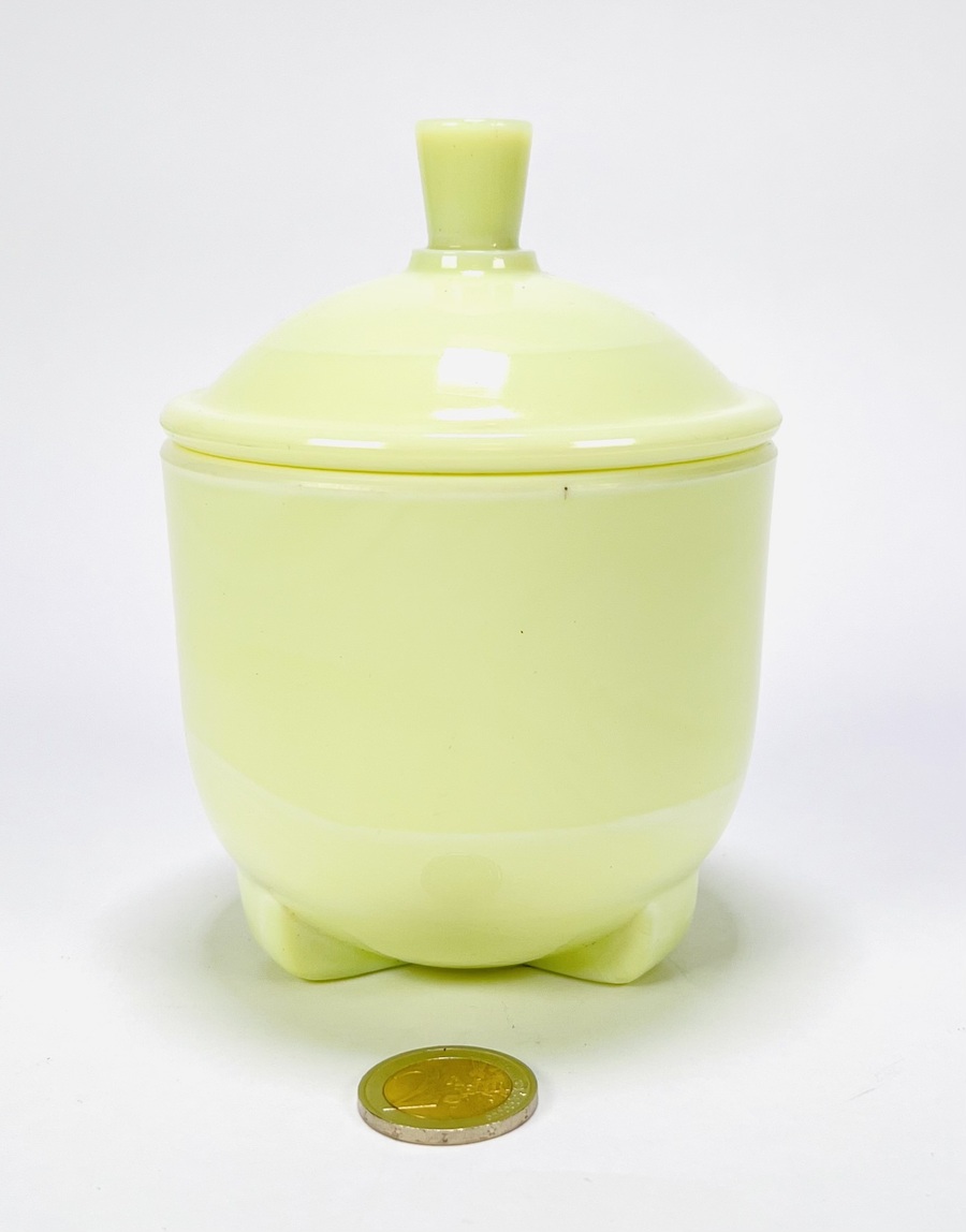 Gele colopal glazen jampot ontworpen door A.D. Copier (1901-1991) en uitgevoerd door Glasfabriek Leerdam, gedateerd 1931. Onderzijde meegeperst merk ontwerper. Afgebeeld in Leerdam Glas 1878-2003, A. v.d. Kley-Blekxtoon; pag.101. Zeker zijn van deelname? Plaats vanaf 22 augustus een schriftelijk bod online! |