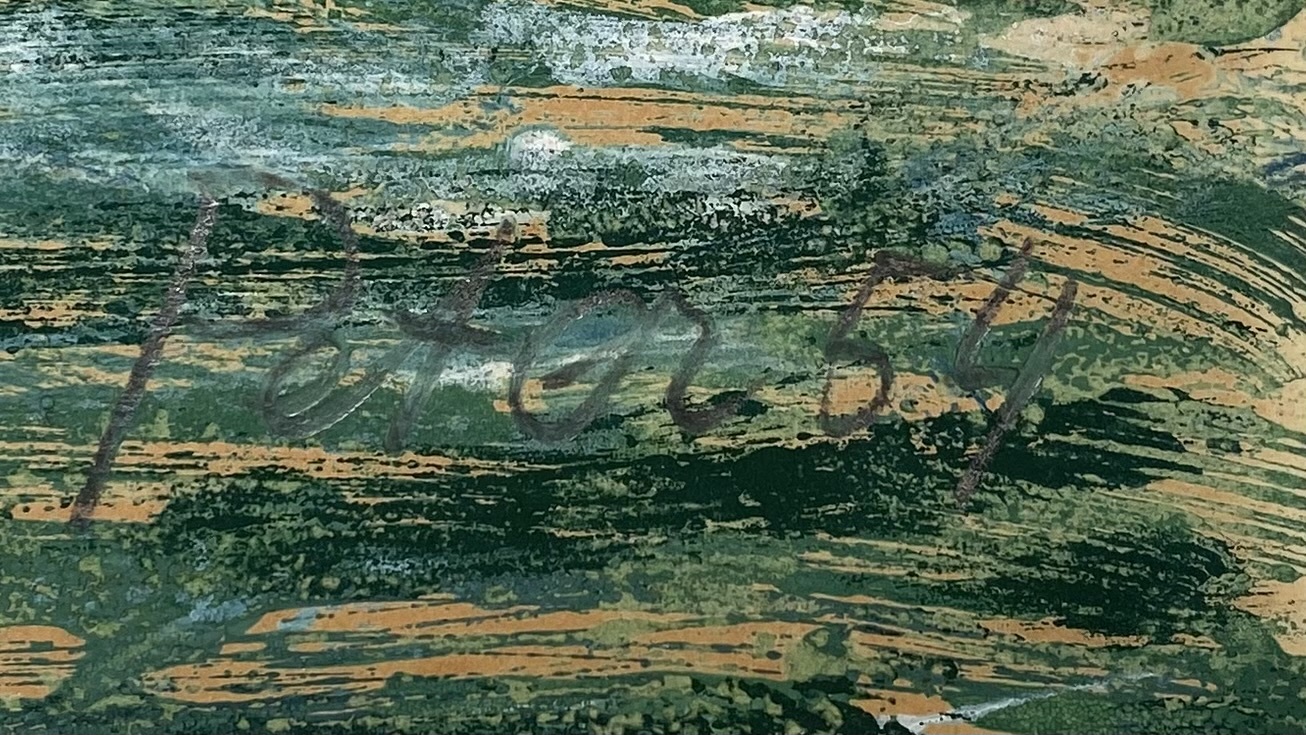 Kleurenhoutsnede in expressionistische stijl van stadsgezicht met gracht en gevelpanden, gesigneerd rechtsonder in potlood “Peter 54” en linksonder voorzien van oplagenummer 9 XII. Gemaakt op papier met zichtbare structuur van de druktechniek, gedateerd 1954. Wil je direct deelnemen? Plaats vanaf 22 augustus alvast een schriftelijk bod via onze website! |