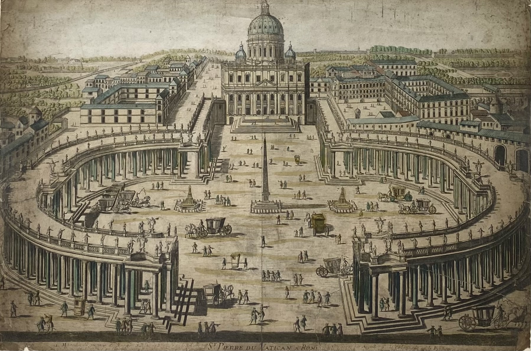 Kopergravure, Sint-Pietersplein Rome, 18e eeuw