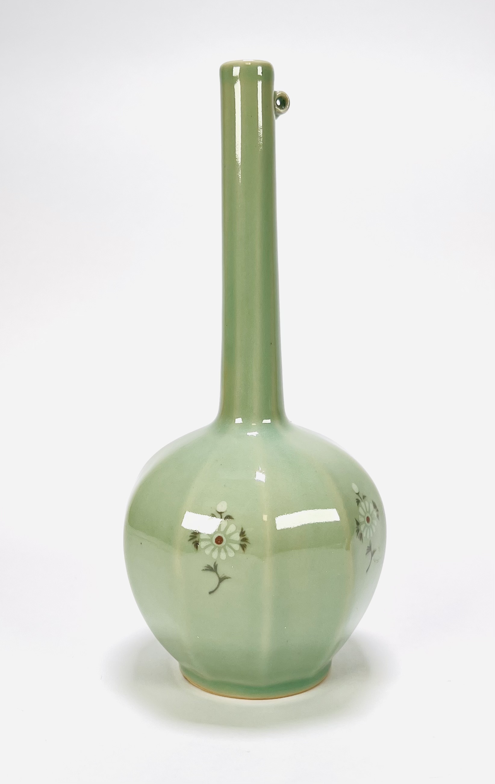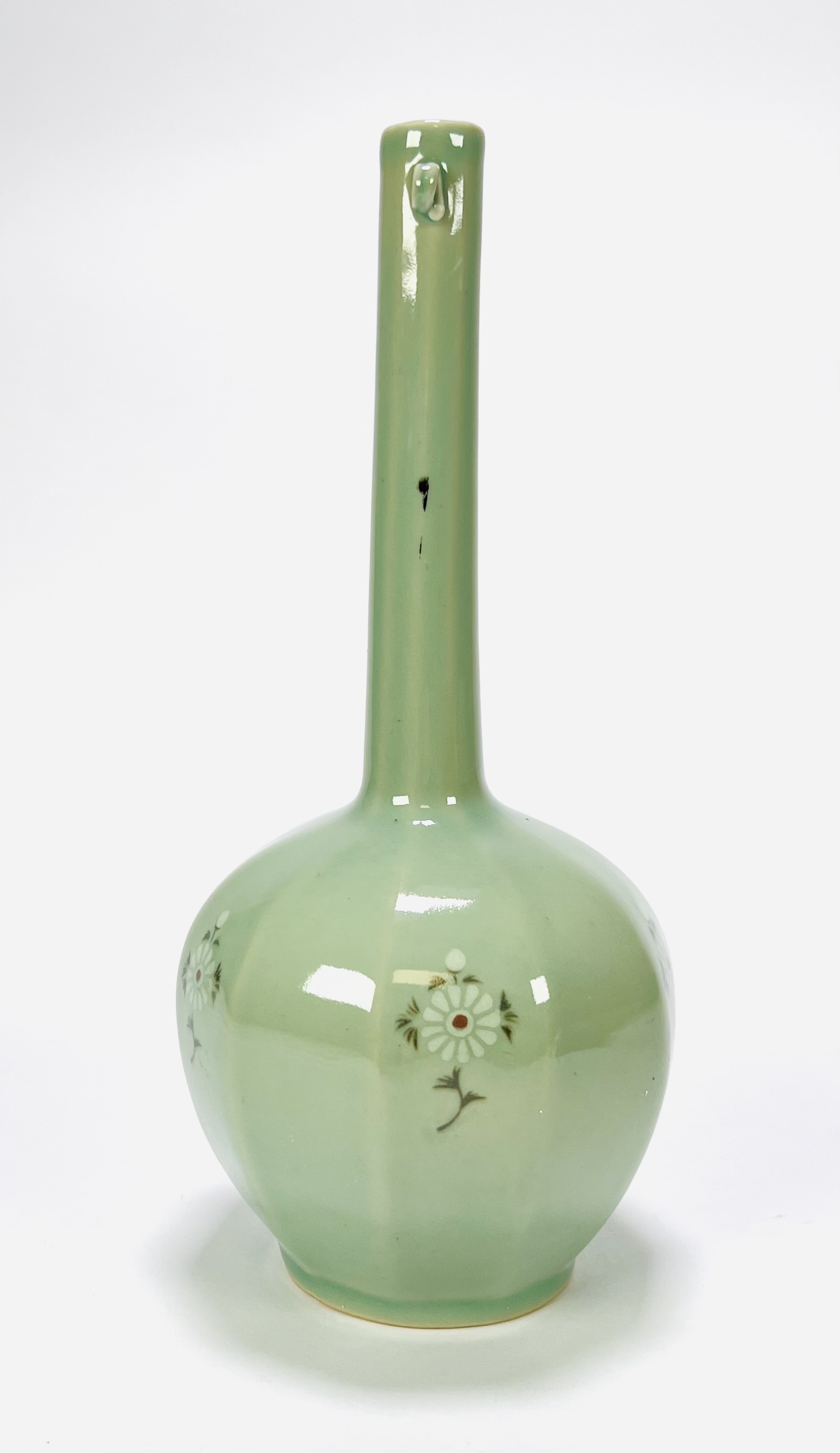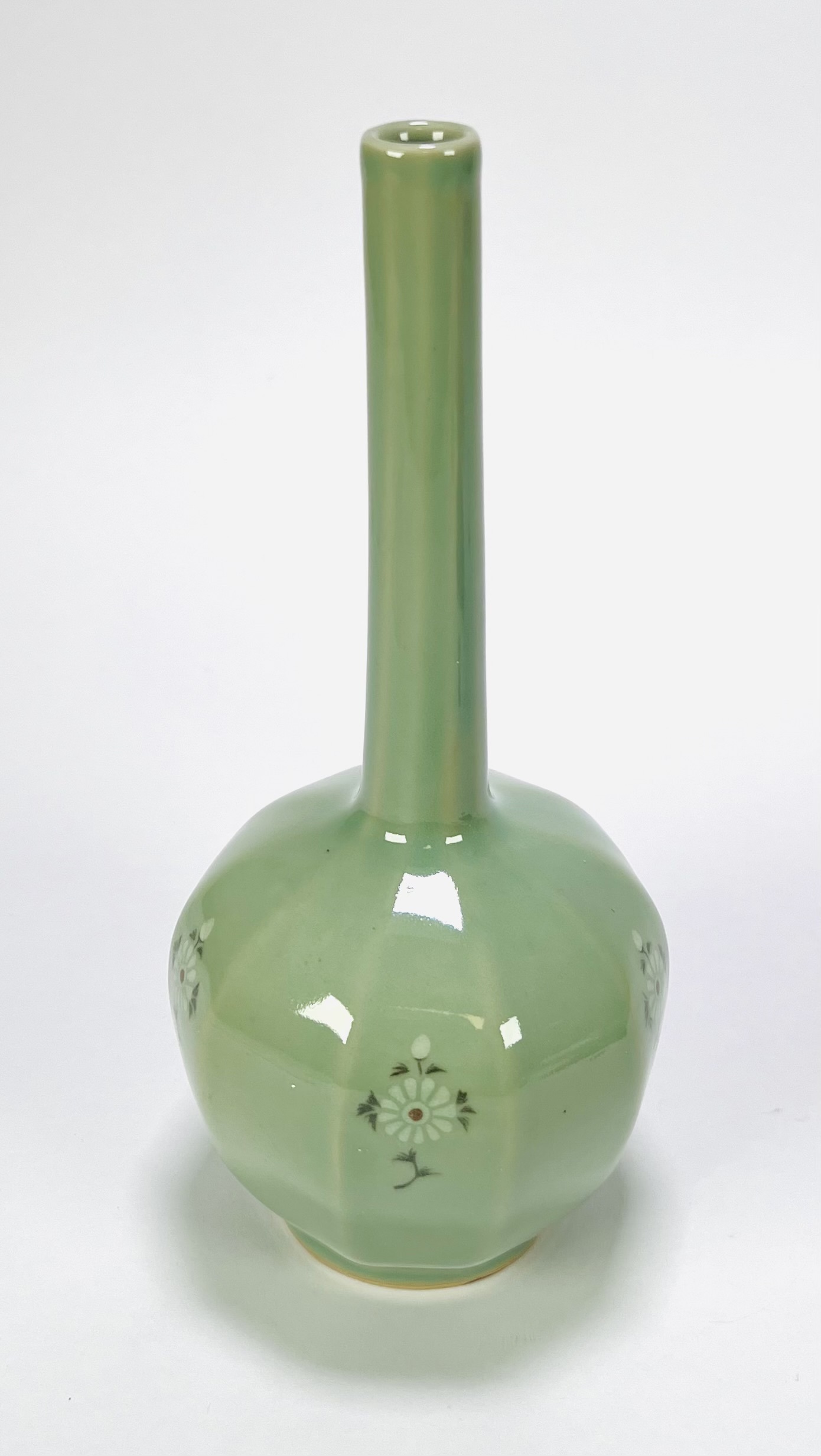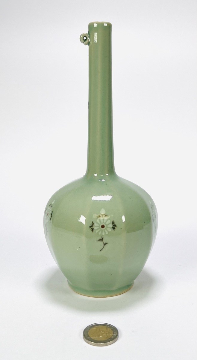 Celadon flesvaas met bloemdecor, ca. midden 20e eeuw, Korea