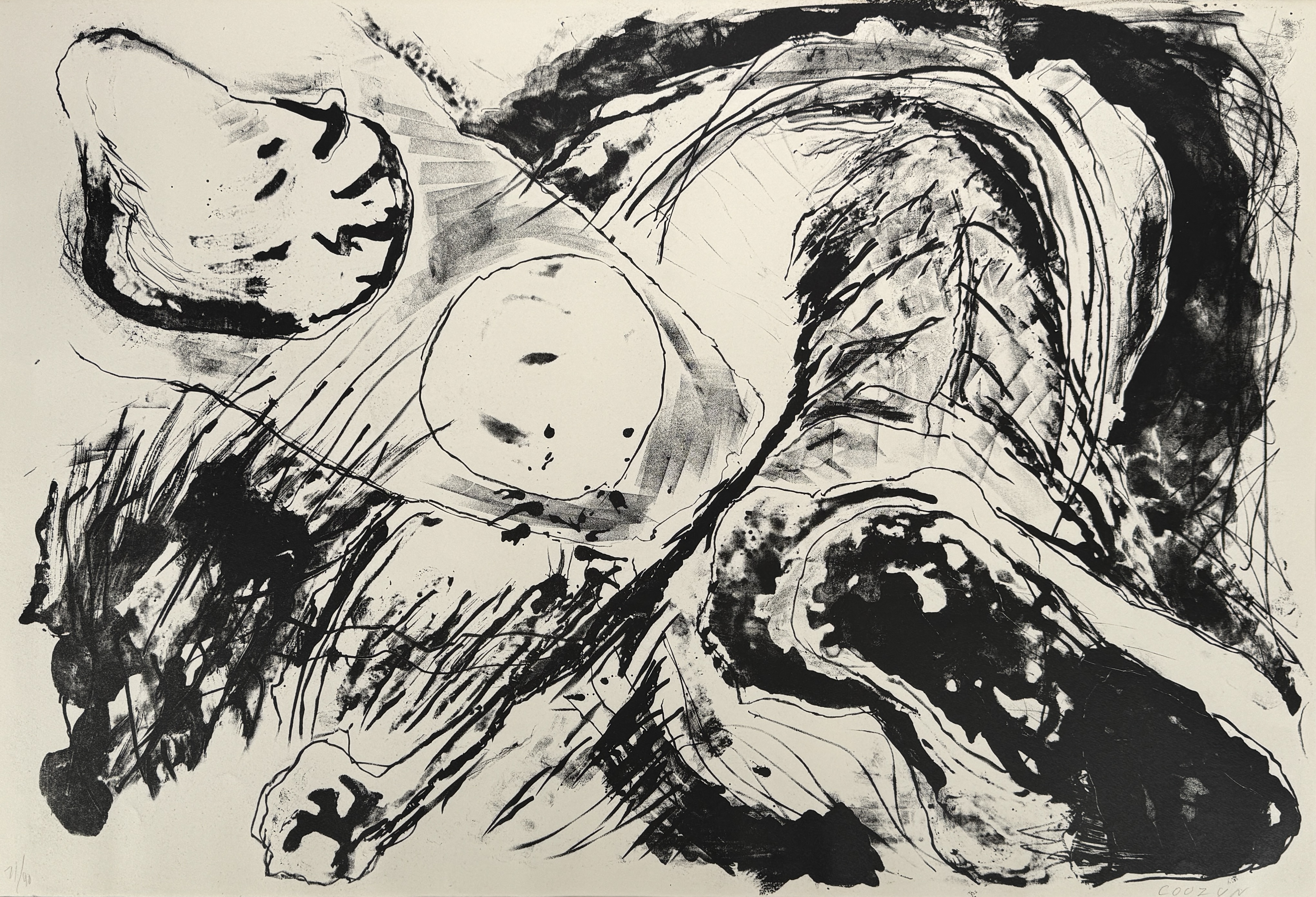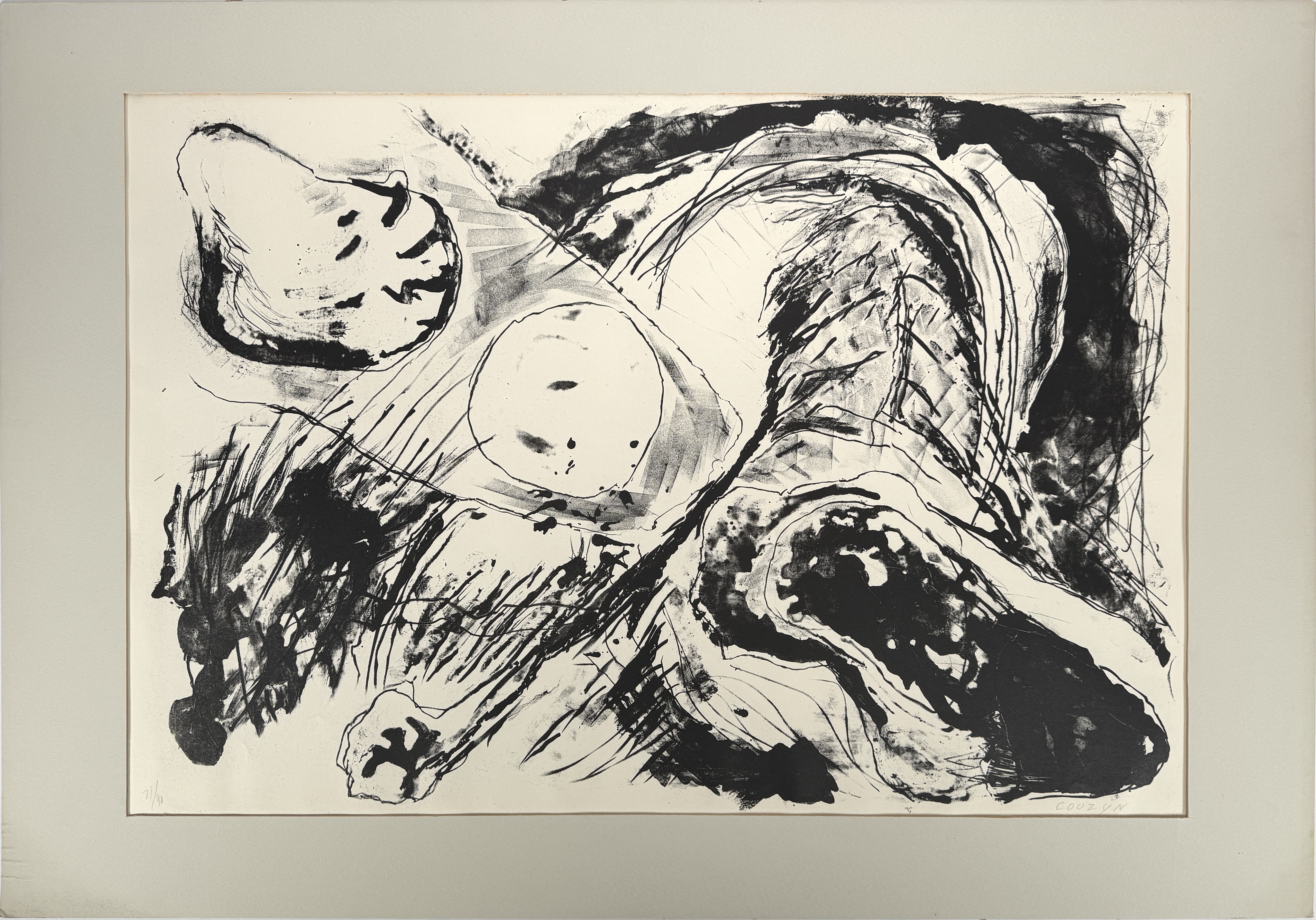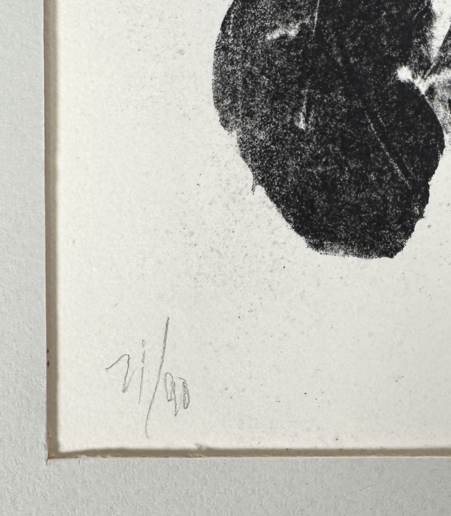 Litho in zwart-wit van Wessel Couzijn (1912–1984), uitgevoerd op papier in abstract-expressionistische stijl, omstreeks jaren '60. Het werk is rechtsonder met potlood gesigneerd en linksonder genummerd als oplagenummer 21/90. Eerst deze litho zien voordat je biedt? Bezoek onze kijkdagen op 29, 30 en 31 augustus van 11:00 tot 17:00 uur! |