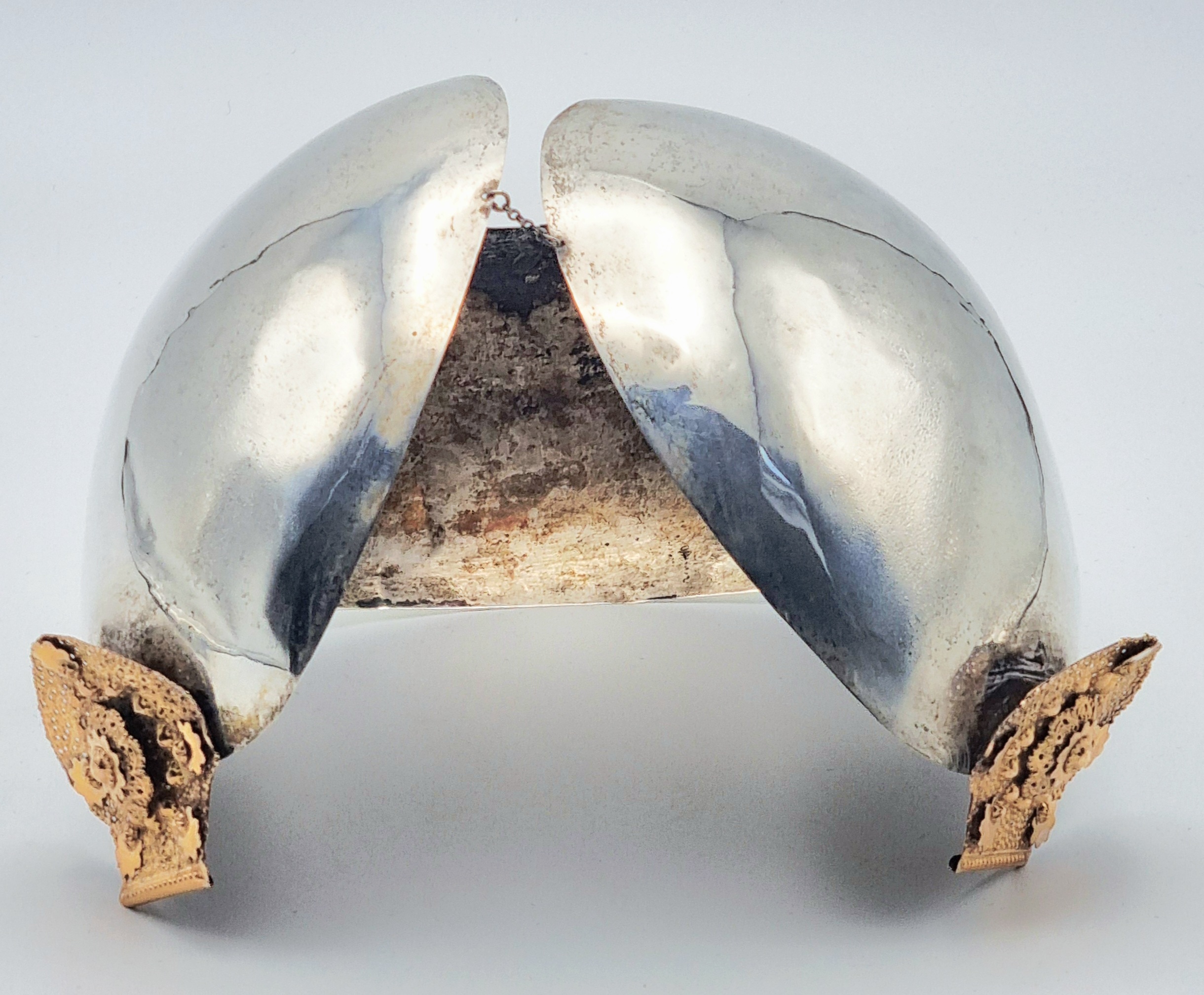 Zilveren oorijzer met gouden broches, ca. 1865, Nederland