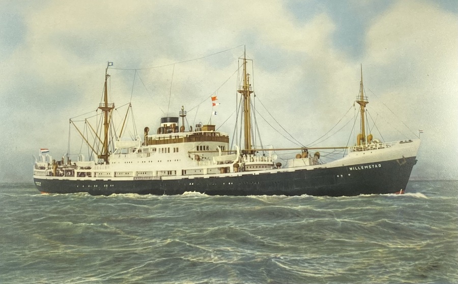 824. Prent stoomschip "Willemstad", Koninklijke Nederlandse Stoomboot Maatschappij, ca. 1950