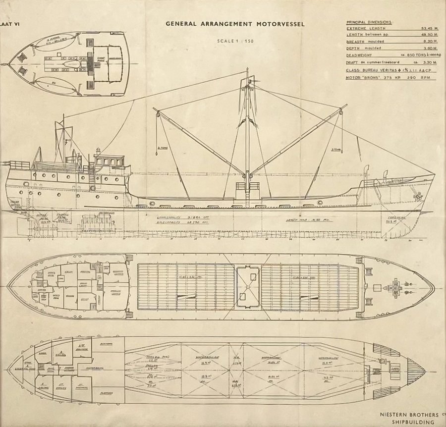865. Bouwtekening motorschip Niestern Brothers Delfzijl, ca. 1950
