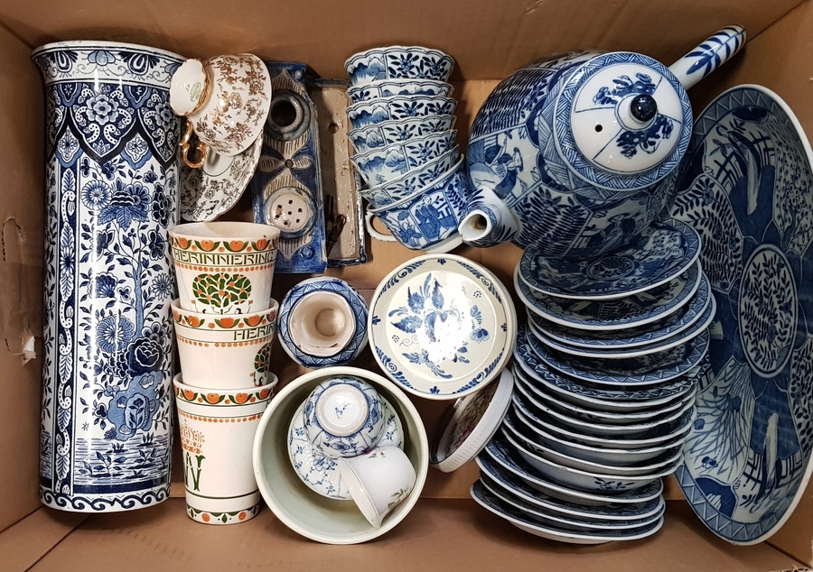 Lot aardewerk en porselein uit de 20e eeuw waaronder borden, schotels, kopjes, schaaltjes, een theepot en vazen. Het merendeel is uitgevoerd in blauw-wit decor met florale en figuratieve motieven in Delfts georiënteerde stijl. Enkele stukken zijn polychroom met teksten en geometrische decoratie. De voorwerpen zijn vervaardigd uit geglazuurd aardewerk en porselein.