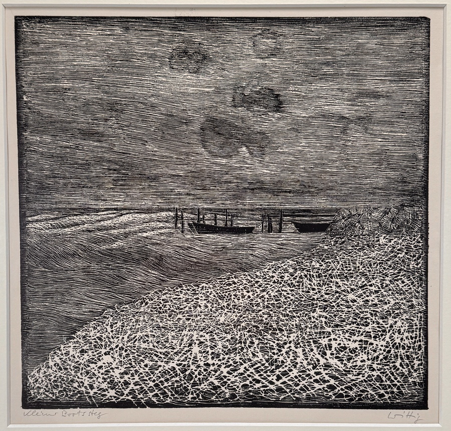 590. Houtsnede Werner Wittig, "Kleiner Bootssteg", eind 20e eeuw
