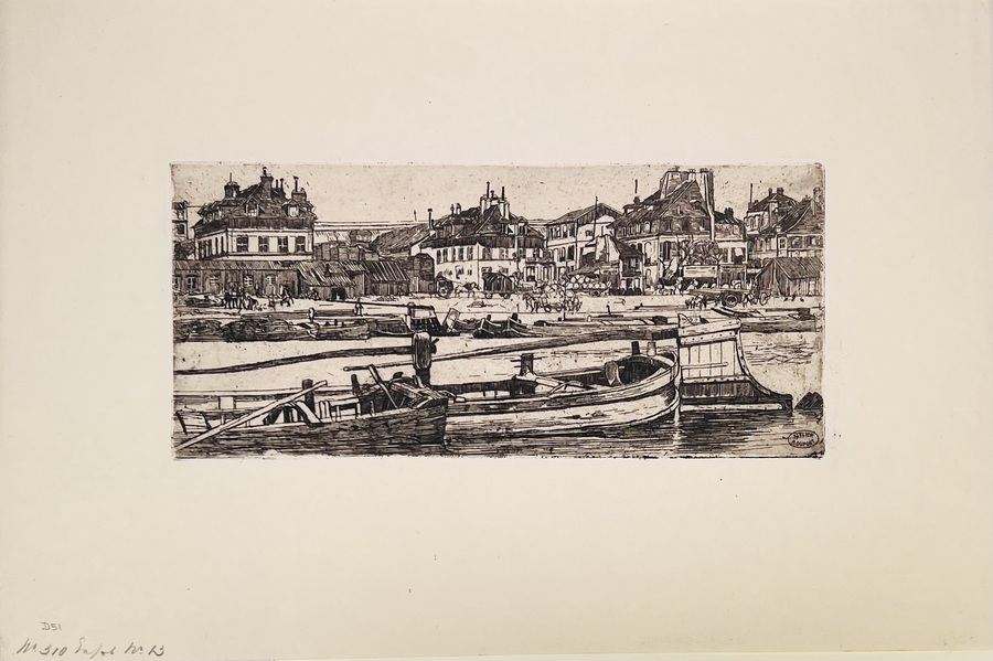 Ets op zink door Prof. Pieter Dupont (1870–1911), getiteld "Seinekade met schuiten te Parijs", vervaardigd in de zomer van 1896. Afgebeeld zijn diverse boten aan de kade met stadsbebouwing op de achtergrond. Proefdruk vóór de oplage met atelierstempel. Rechtsonder in de plaat gesigneerd. Beschreven in de catalogi van W.F. Dupont (nr. 51) en E.J. van Wisselingh (nr. 318).