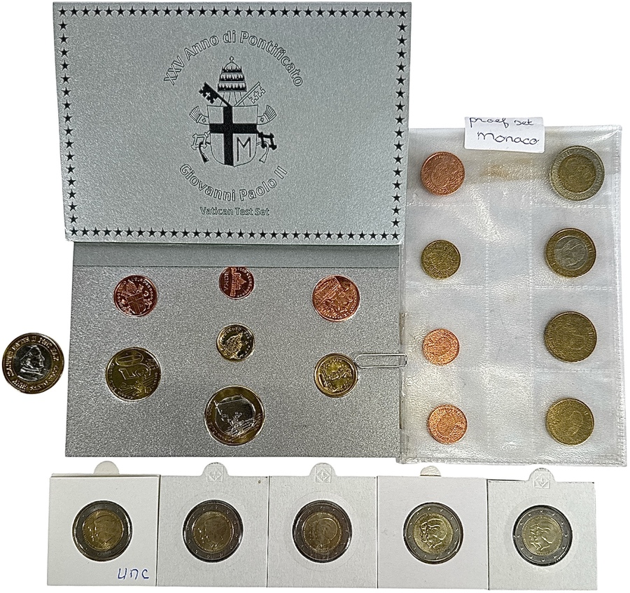 Verzameling euromunten, onder andere Giovanni Paolo II en Albert II munten.