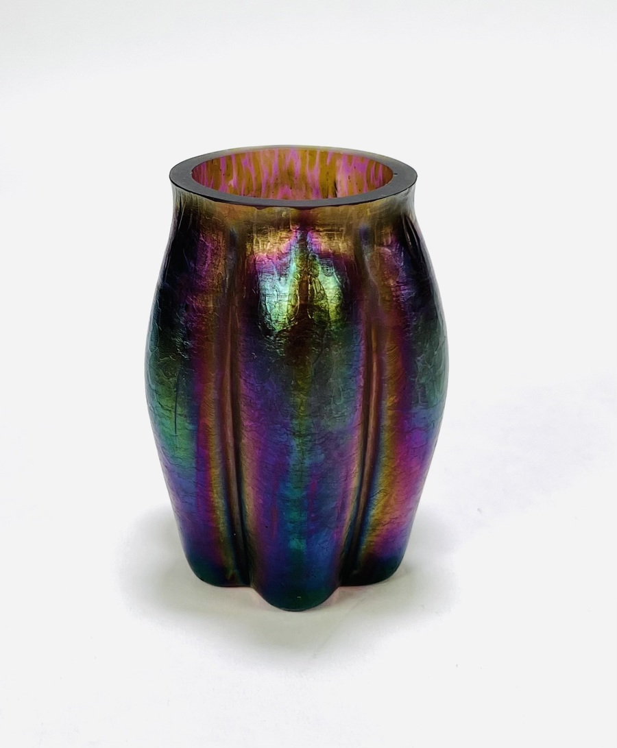 700. Art Nouveau iriserend glazen vaasje, Bohemen, ca. eerste kwart 20e eeuw