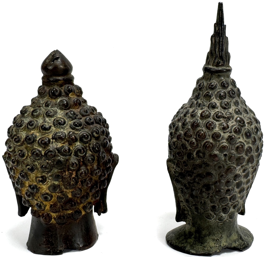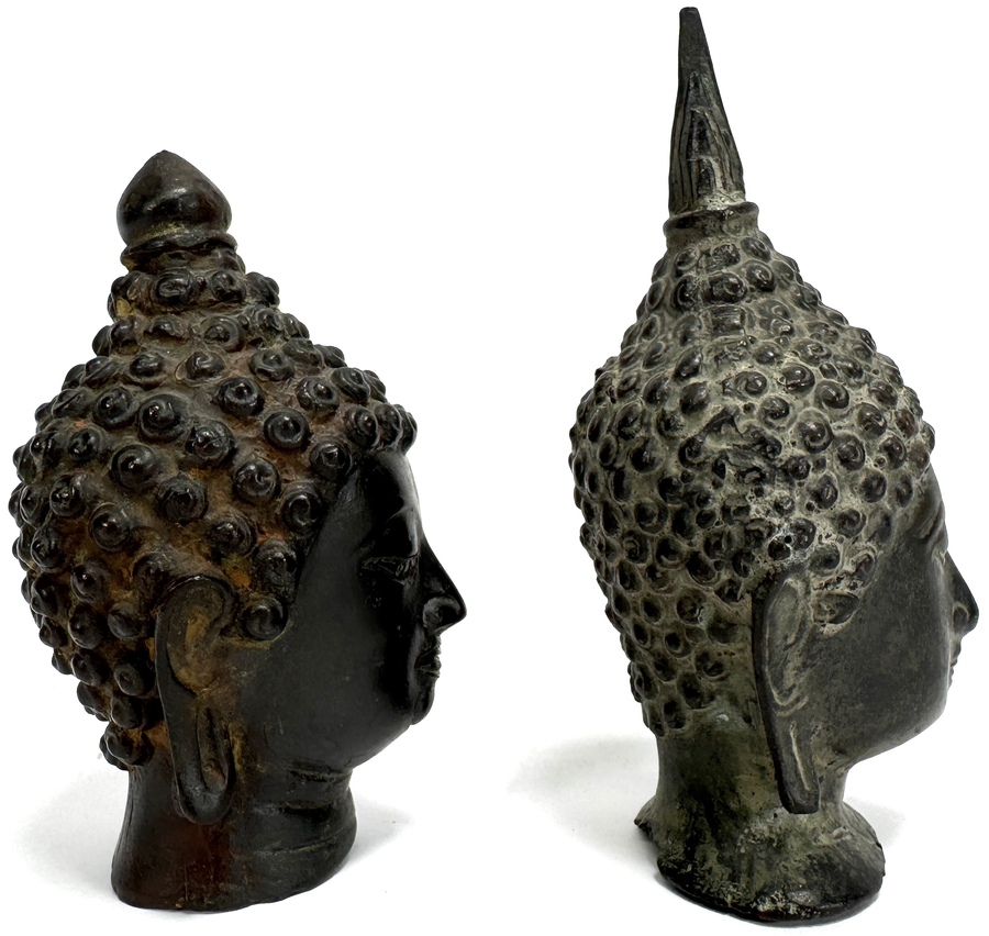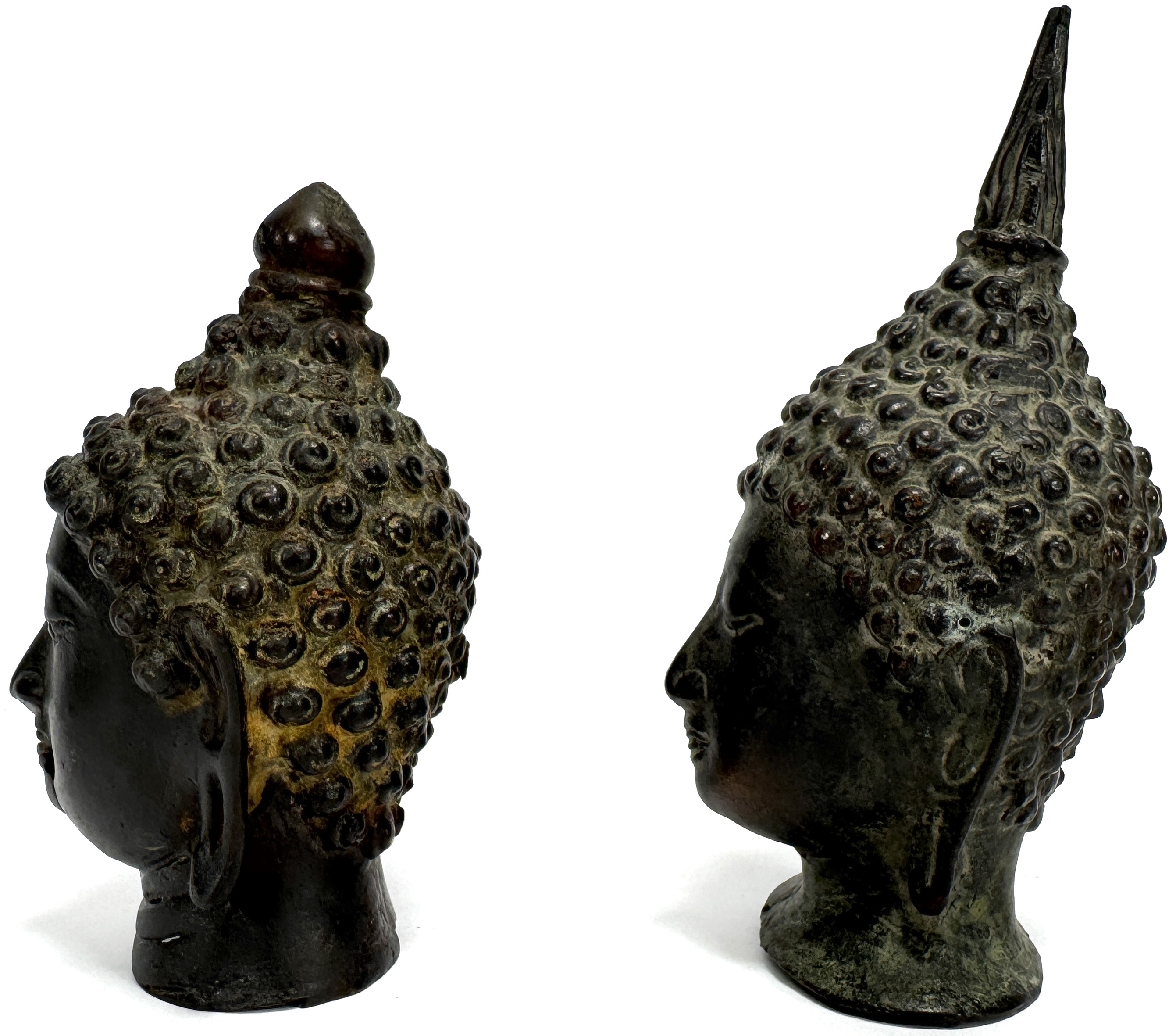 Bronzen boeddha hoofdjes, midden 20e eeuw, Zuidoost-Azië