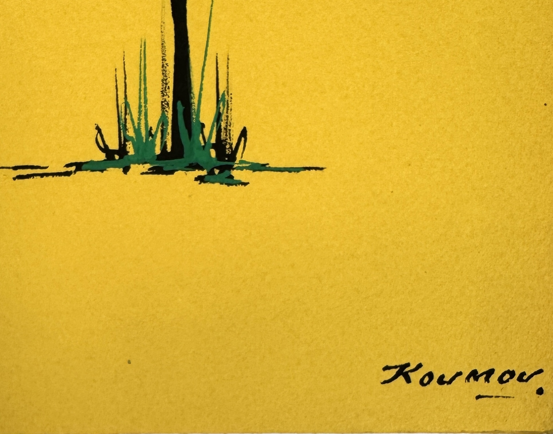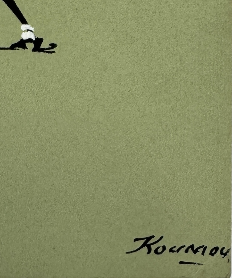 Vier gesigneerde tekeningen van Koumou, uitgevoerd met inkt op papier, daterend uit circa midden 20e eeuw. De werken tonen gestileerde Afrikaanse krijgers en dansers in felle kleuren tegen egale achtergronden in zwart, grijs, groen en geel. Elk werk rechtsonder gesigneerd Koumou. Wil je dit tekeningen in het echt bekijken? Kom naar de kijkdagen op 29, 30 en 31 augustus! |
