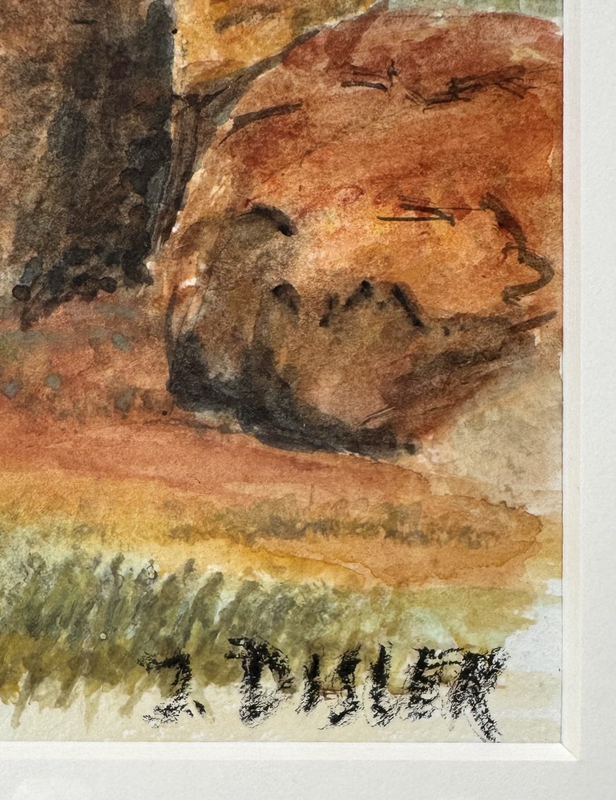 Aquarel van rotsen in Australië, rechtsonder gesigneerd J. Disler, linksonder getiteld Australië en gedateerd ‘99. Zeker zijn van deelname? Plaats vanaf 22 augustus een schriftelijk bod online! |